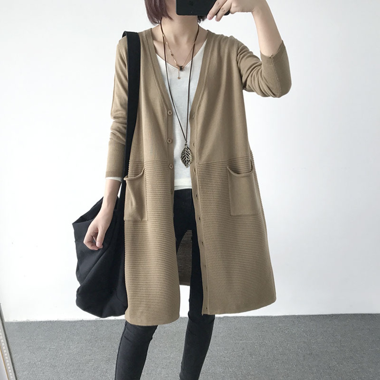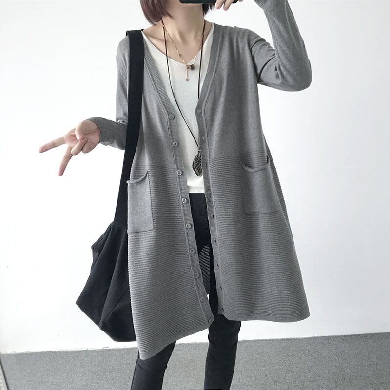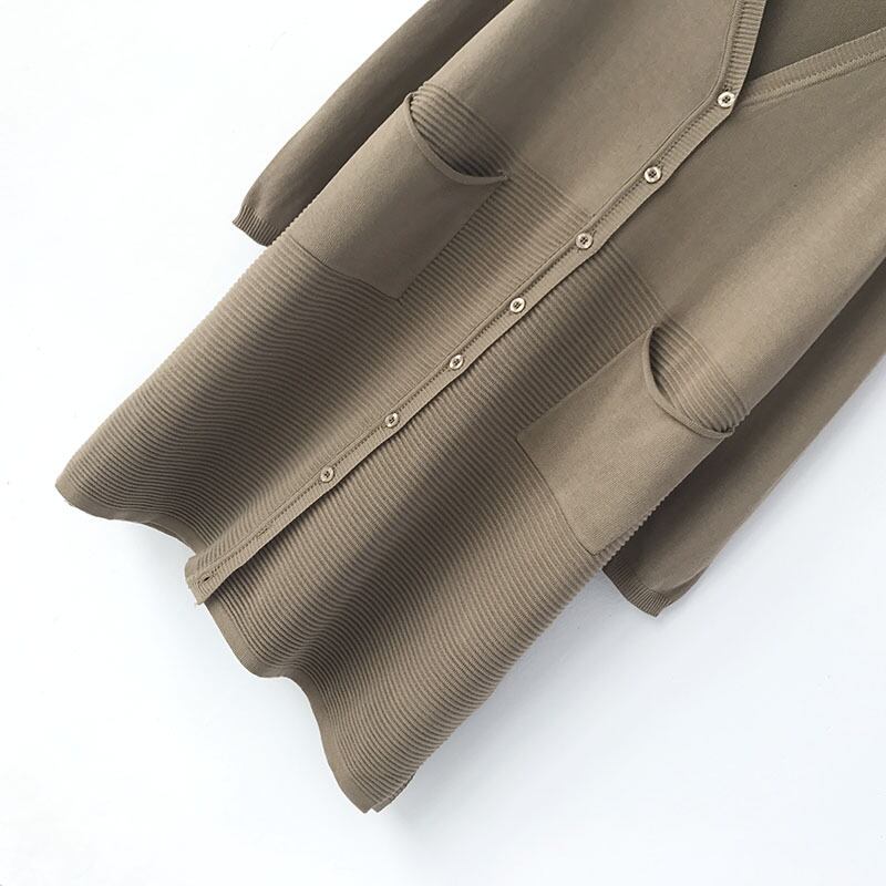 5色カラバリ、Vネックニットロングカーディガン。