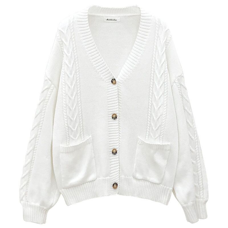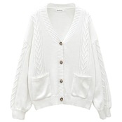 トップス アウター レディース カーディガン 羽織り 長袖 Vネック ドロップショルダー ボリューム袖 ケーブルニット ポケット ボタン かわいい おしゃれ お洒落 キュート ガーリー ラフ ルーズ 存在感 抜け感 フリーサイズ ワンサイズ 白 ホワイト 黄色 イエロー 無地 春 秋 冬 10代 20代 30代 学生 通学 デート 女子会 休日 イベント プレゼント ギフト 定番 モテ 体型カバー 着回し 普段使い 重ね着 韓国 オルチャン 制服 女子高生 JK 女子中学生 ユニフォーム スクール