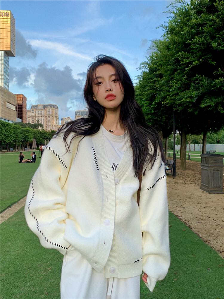 トップス アウター レディース ニットカーディガン 長袖 ドロップショルダー Vネック ゆったり ゆる ルーズ ステッチライン 大人可愛い シンプル カジュアル 大人 おしゃれ お洒落 かっこいい 大人女子 こなれ感 ラフ メンズライク マニッシュ ボーイッシュ 存在感 抜け感 S M L 白 ホワイト 黒 ブラック 無地 春 秋 冬 10代 20代 30代 40代 ママ 学生 通学 お出かけ 休日 定番 プレゼント ギフト 体型カバー 楽ちん 着回し 普段使い 重ね着 韓国 オルチャン