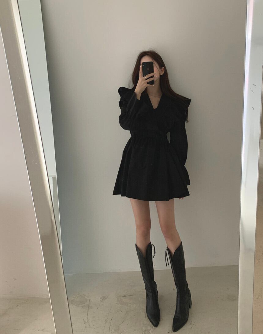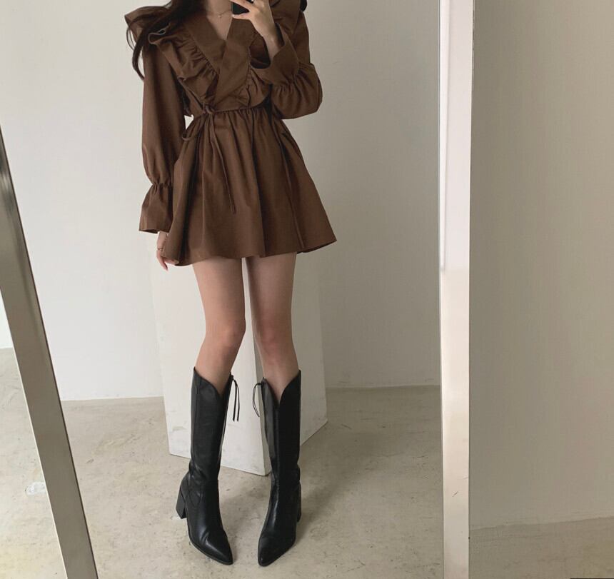 ワンピース 3色 フリル サイドリボン 長袖 レディース クロスデザイン ミニ丈 ショート丈 春 秋 冬 Aライン Vネック ふんわり ガーリー フェミニン シンプル カジュアル ゆったり 体型カバー 細見え 着痩せ オシャレ お洒落 かわいい 大人可愛い 10代 20代 30代 40代 茶色 ブラウン 黒 ブラック 白 ホワイト 華奢 韓国 トレンド 流行 映え SNS 女子会 モテ デート 量産 姫系 普段着 スタイルアップ ギャザー S М 美脚 脚長 小顔 レトロ アンティーク ヴィンテージ
