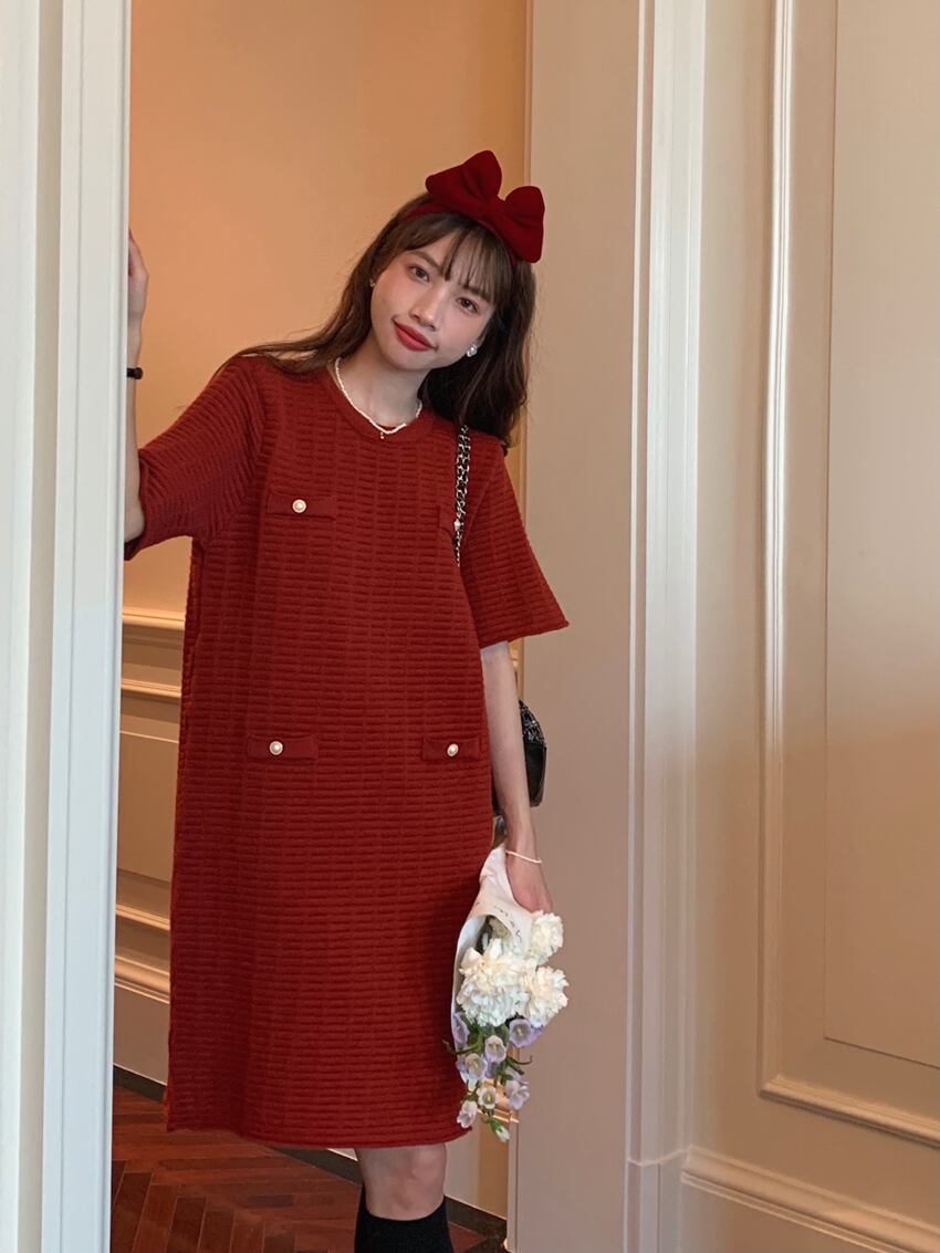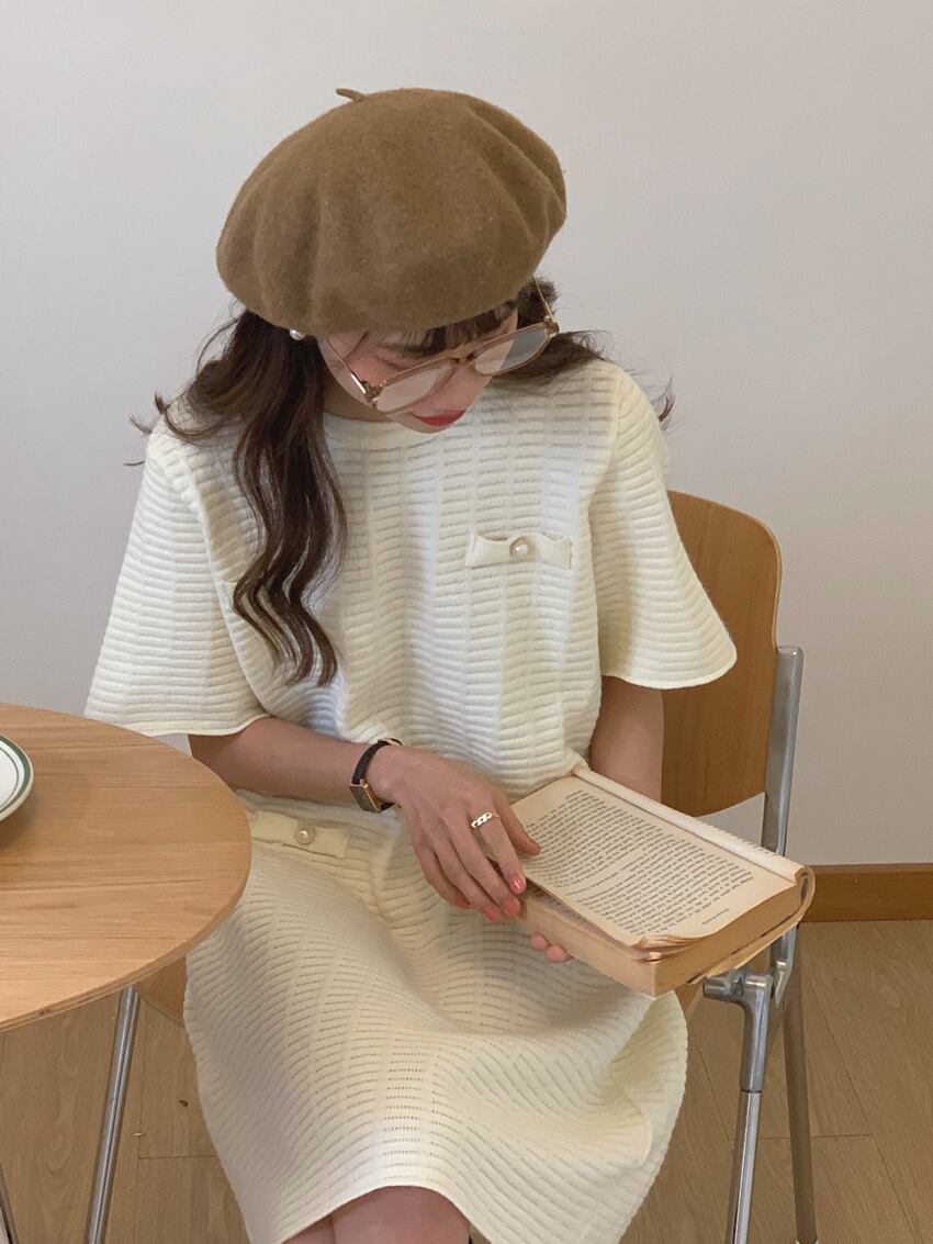 ワンピース ニット サマーニット 4色 レディース 半袖 ミニ丈 ショート丈 パール ボタン ラウンドネック ギャル お洒落 オシャレ かわいい 大人可愛い セクシー シンプル カジュアル 無地 ブルー 水色 赤 レッド ベージュ ホワイト 黒 ブラック 膝上 10代 20代 30代 40代 春 夏 韓国 トレンド 流行 シンプル カジュアル ラフ こなれ感 ゆる デート モテ 女子会 休日 映え SNS 楽ちん 大人女子 体型カバー 着痩せ 細見え 華奢 エレガント 上品 きれいめ アンティーク