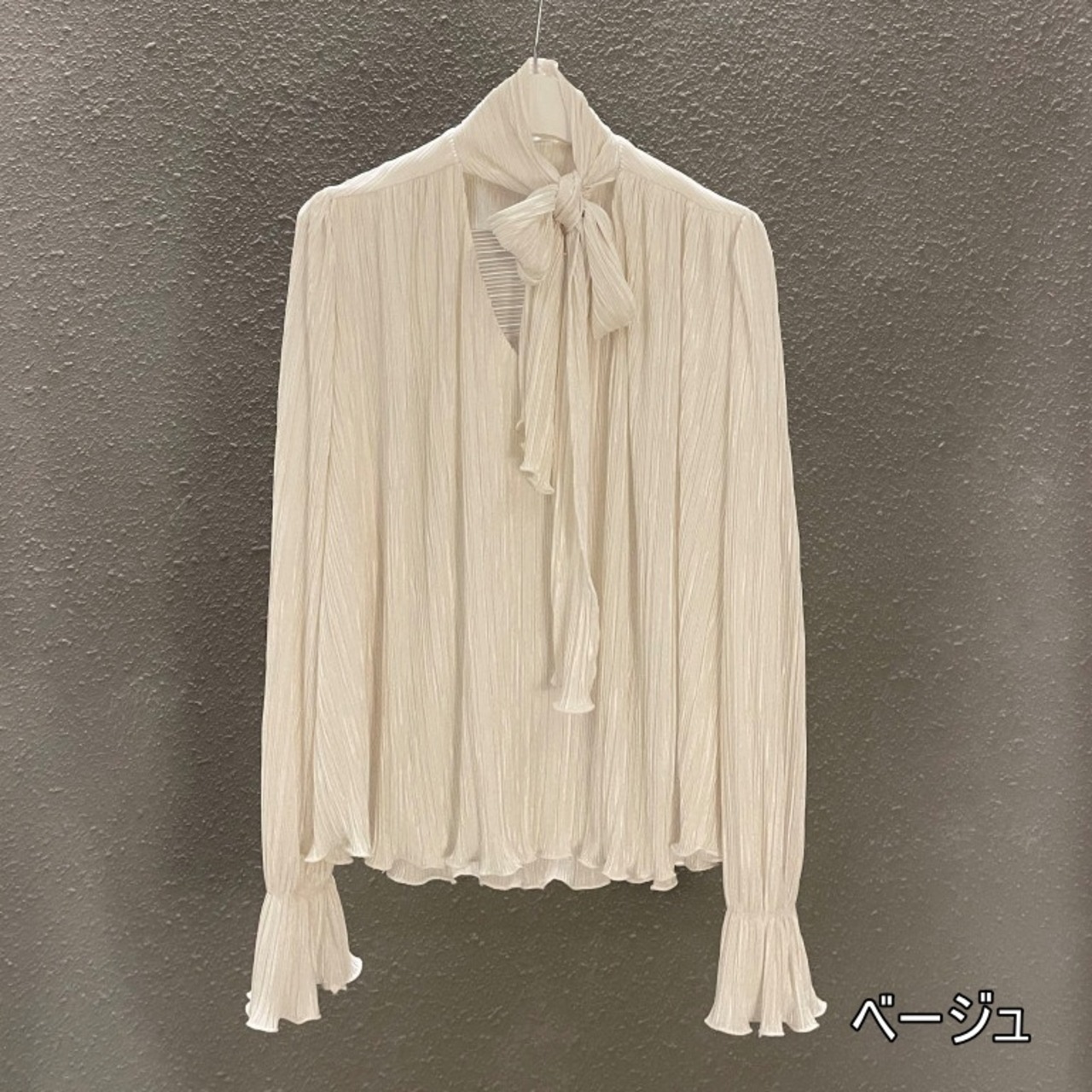 トップス ブラウス 3色 ボウタイ ストール シャツ カットソー Vネック 長袖 ゆったり レディース きれいめ 上品 エレガント 大きめ お洒落 オシャレ フェミニン ガーリー かわいい 大人可愛い ОL 通勤 オフィス 仕事 シンプル 春 秋 夏 冬 こなれ感 休日 お出かけ 女子会 韓国 トレンド 流行 Iライン ストレート 無地 ベージュ ブルー 水色 ブラック 黒 体型カバー 着痩せ 映え SNS しわ加工 とろみ ふんわり 着回し ヴィンテージ レトロ 透け感 薄手 抜け感