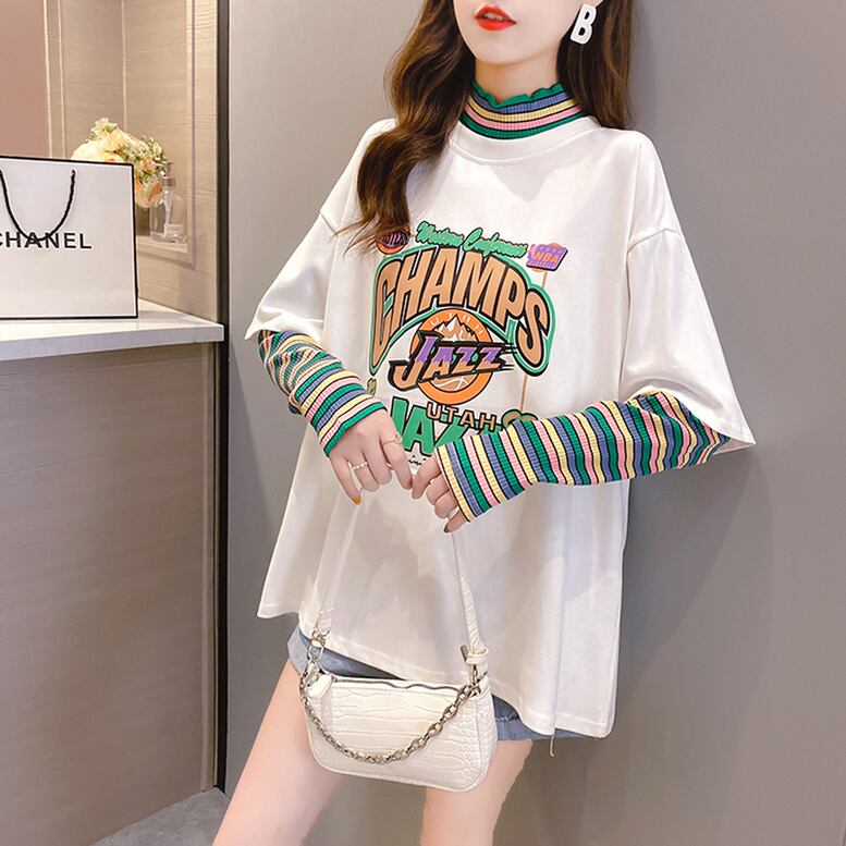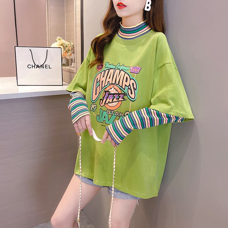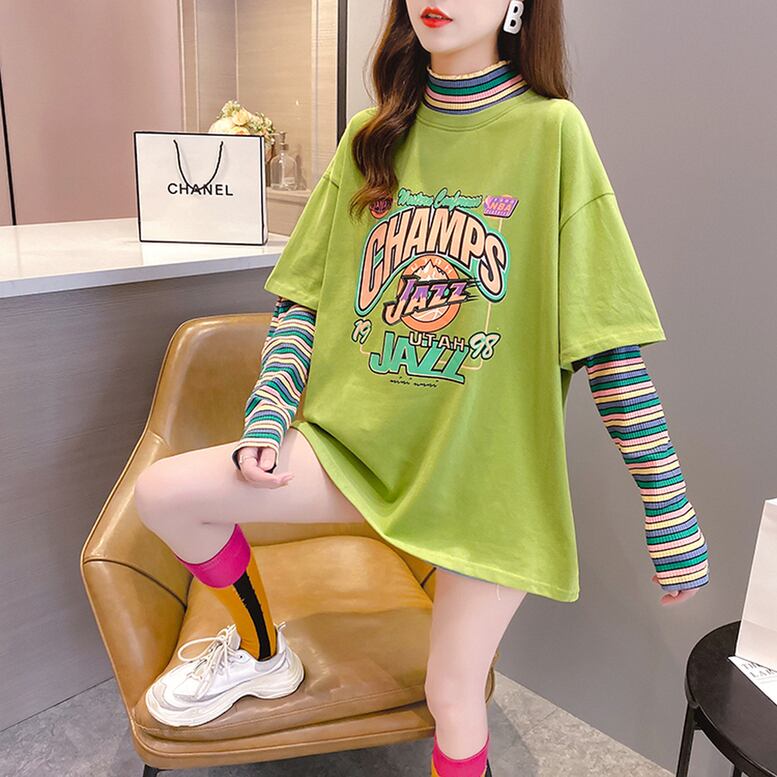 ポップなデザインがカジュアルで可愛い重ね着風シャツ