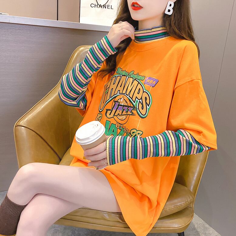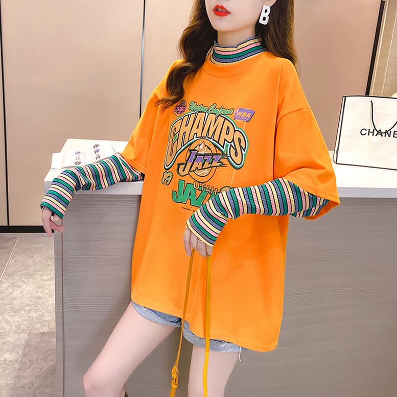 プリントロゴ入り重ね着風シャツ トップス レディース シャツ Tシャツ 重ね着風シャツ フェイクレイヤードTシャツ ビッグシルエット プリントTシャツ 長袖 ドロップショルダー ロングTシャツ 橙色 白 黄緑 オレンジ ホワイト グリーン 大人可愛い きれいめ ガーリー マニッシュ ルーズ キュート 春 夏 秋 冬 二次会 通勤 学生 通学 お出かけ パーティー イベント 休日 体型カバー 普段使い 定番 トレンド オーバーサイズ ゆったり インスタ映え カジュアル クール おしゃれ