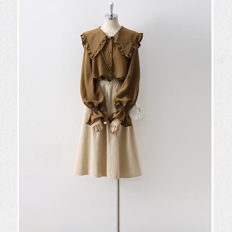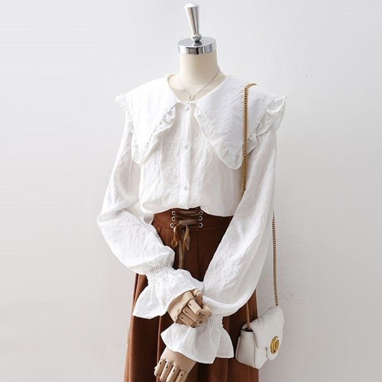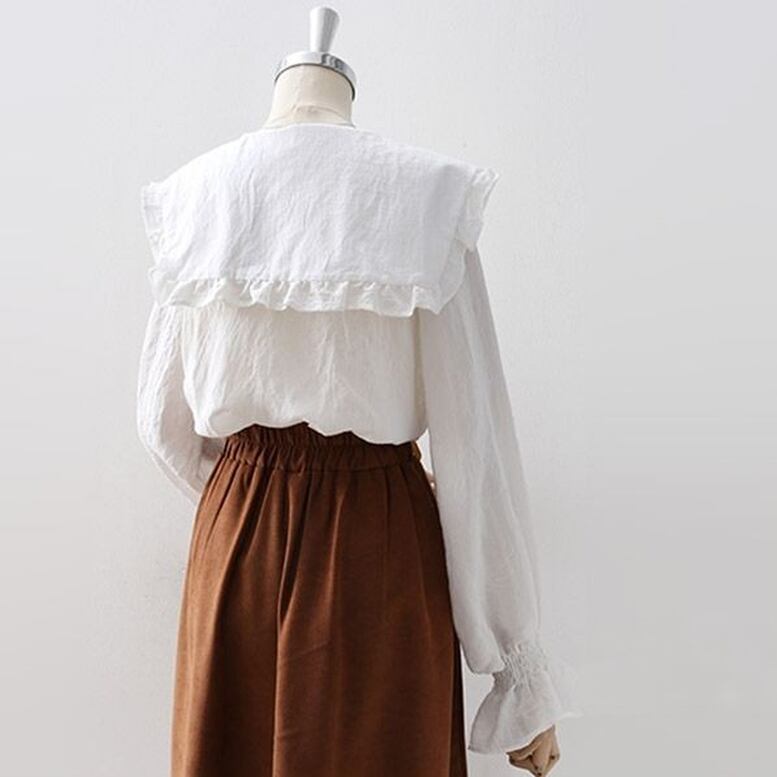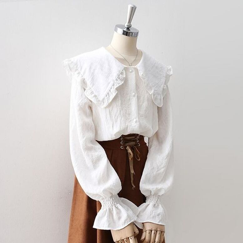 大きなフリルの襟が可愛いガーリーなシャツブラウス