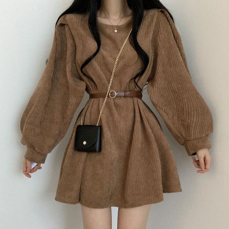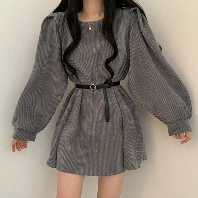 ワンピース 3色 ベロア ベルト付き レディース 長袖 オシャレ お洒落 かわいい 大人可愛い 10代 20代 30代 40代 ミニ丈 ショート丈 シンプル カジュアル ラフ 無地 ブラウン 茶色 黒 ブラック 灰色 グレー くすみカラー 華奢 細見え ゆったり 大きめ 春 秋 冬 抜け感 こなれ感 ショッピング レトロ ヴィンテージ ドロップショルダー ゆる ルーズ リラックス 体型カバー こなれ感 ボリューム 袖 ラウンドネック Aライン 体型カバー S М L XL