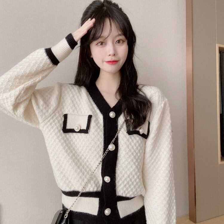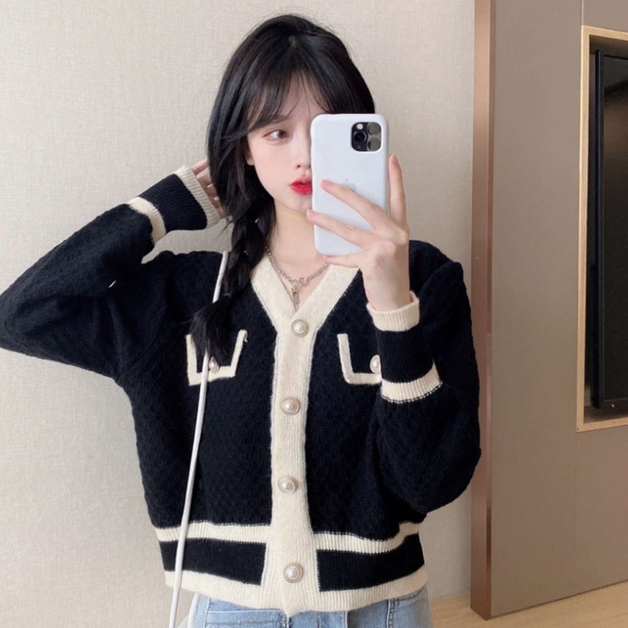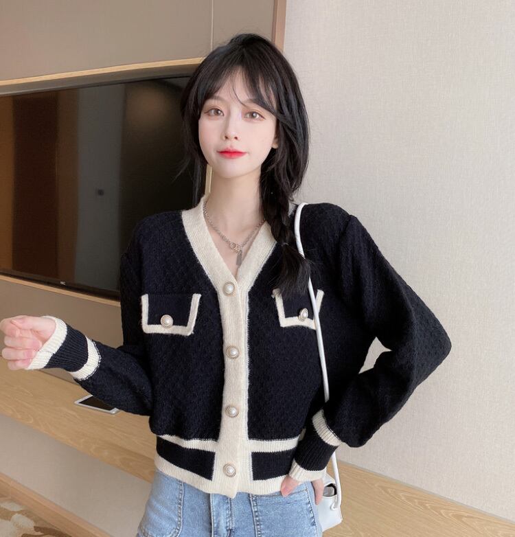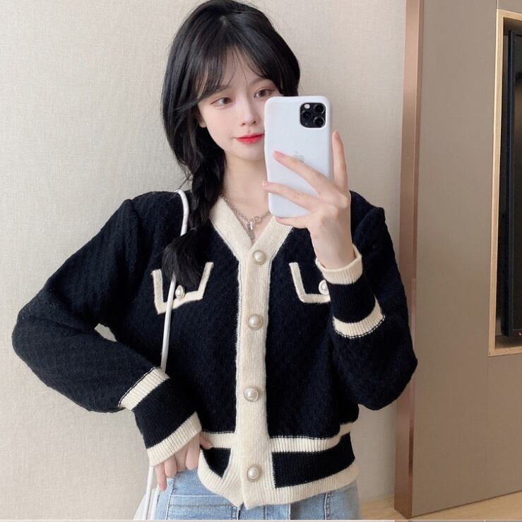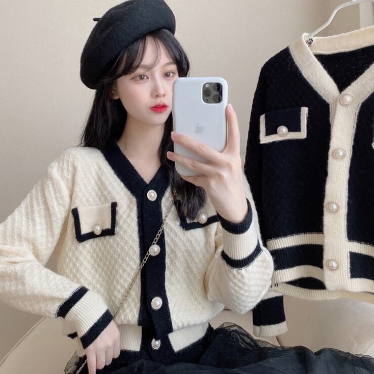トップス カーディガン バイカラー レディース パール ボタン ワッフル ゆったり 大きめ 長袖 きれいめ エレガント 上品 清楚 黒 ブラック 白 ホワイト モノクロ カジュアル 体型カバー 細見え 着痩せ 春 秋 冬 かわいい 大人可愛い ガーリー オシャレ お洒落 ОL 通勤 デート モテ 女子会 こなれ感 休日 お出かけ 量産 姫系 10代 20代 30代 40代 韓国 トレンド 流行 Vネック アンティーク ヴィンテージ 映え SNS フェミニン ショート丈