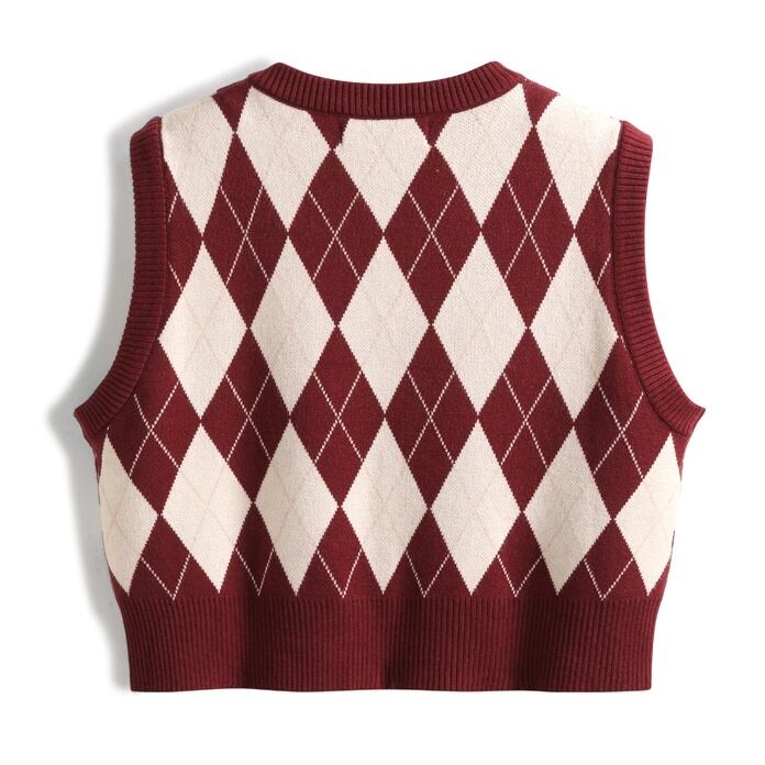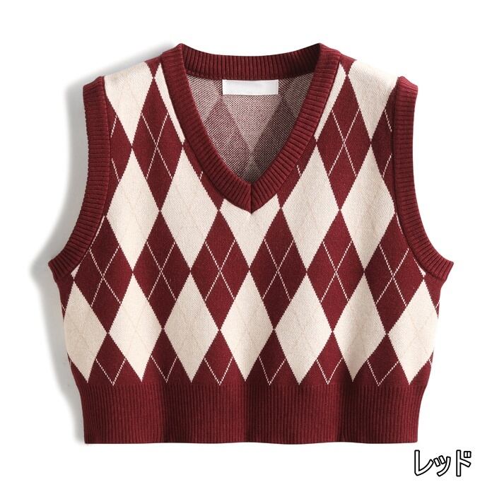 トップス ベスト ニット アーガイル 3色 レディース ショート丈 Vネック ノースリーブ オシャレ お洒落 きれいめ かわいい 大人可愛い ガーリー 10代 20代 30代 着回し 重ね着 シンプル カジュアル ラフ ジレ チョッキ ブラック 黒 ベージュ 赤 レッド くすみカラー 総柄 華奢 細見え タイト スリム 春 秋 冬 抜け感 こなれ感 ショッピング レトロ アンティーク ヴィンテージ 柔らか 着心地 学生 スクール 制服 脚長 スタイルアップ チェック柄 ダイヤ シック モダン