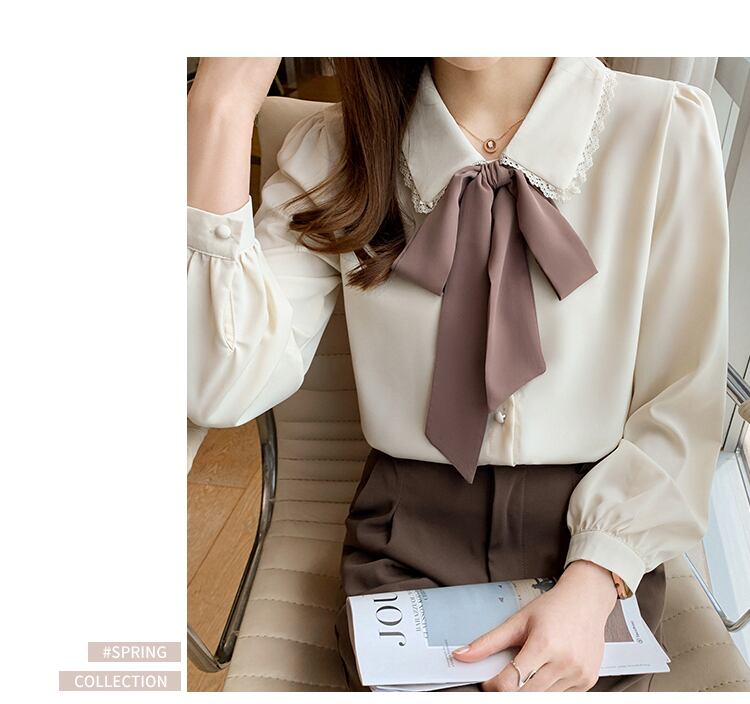 2色カラバリ、4サイズ展開のボウタイ付きブラウス。
