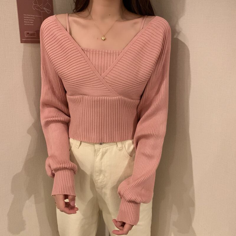 トップス ニット 4色 レイヤード ドッキング 重ね着風 レディース 長袖 ニットソー カットソー オシャレ お洒落 無地 ブラウン ホワイト ピンク ブラック 茶色 白 黒 細身 タイト スリム 着痩せ 細見え こなれ感 ラフ カジュアル セクシー 10代 20代 30代 40代 春 秋 冬 薄手オフショルダー 肌見せ 韓国 トレンド 流行 映え SNS 女子会 お出かけ 買い物 休日 重ね着 抜け感 Vネック リボン バックデザイン デコルテ 鎖骨 華奢 ショート丈 伸縮性