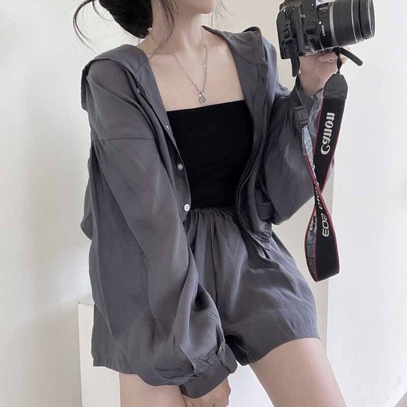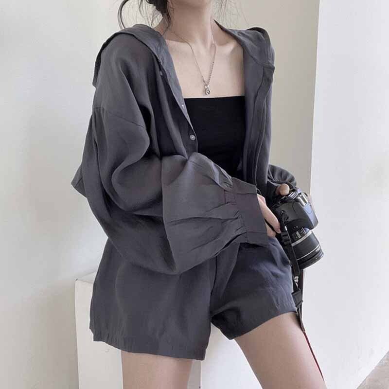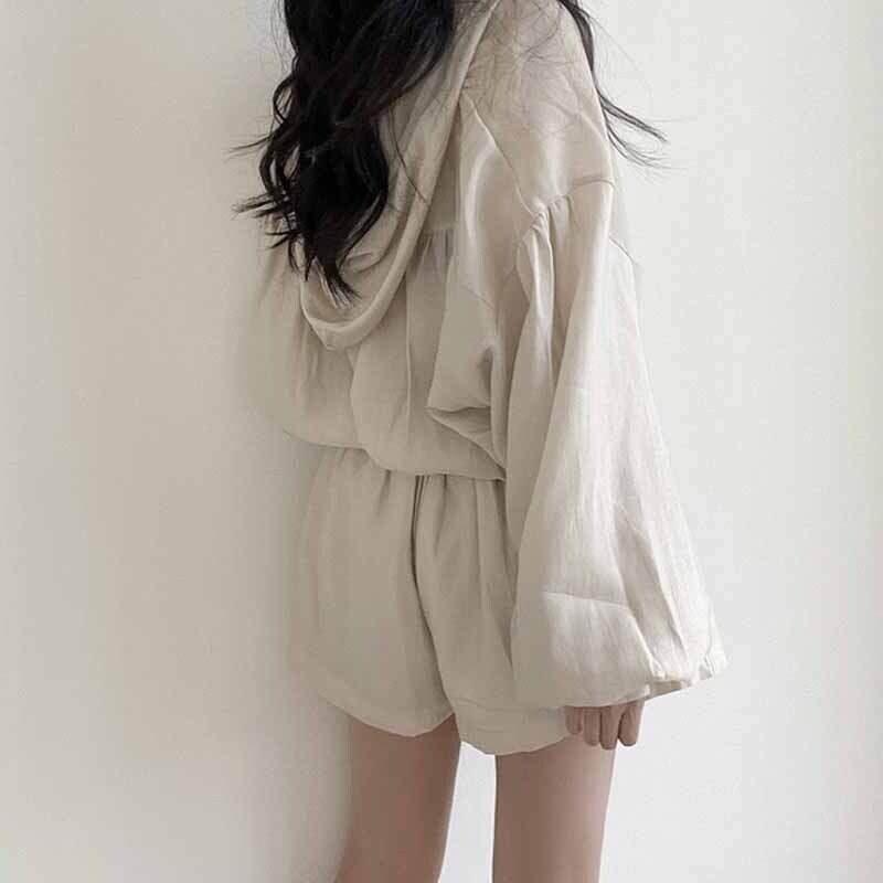 セットアップ 上下セット パーカー ショートパンツ レディース オシャレ お洒落 フード付き アウター ジャケット ハーフパンツ 個性派 個性的 ゆったり 大きめ オーバーサイズ 前開き ボタン ルーズ ゆる こなれ感 お得 お買い得 大人可愛い シック モダン 無地 ベージュ 灰色 グレー 10代 20代 30代 40代 春 夏 秋 膝上 膝丈 ワイド 普段使い 普段着 シンプル カジュアル ラフ 二点セット 韓国 ドロップショルダー 日焼け 防止 UV 対策 ビーチ 海 プール 薄手