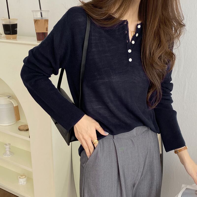 トップス ニット ニットソー 4色 薄手 長袖 レディース ゆったり シンプル カジュアル ラフ 無地 黒 ブラック ベージュ アイボリー ブラウン 茶色 グレー 灰色 くすみカラー 10代 20代 30代 40代 50代 60代 春 秋 冬 お洒落 オシャレ かわいい 大人可愛い こなれ感 伸縮性 着心地 柔らか 着回し カットソー 女子会 デート モテ エレガント 上品 きれいめ カラバリ 新作 清楚 清潔感 定番 華奢 スタイルアップ ハーフボタン ゆる ルーズ