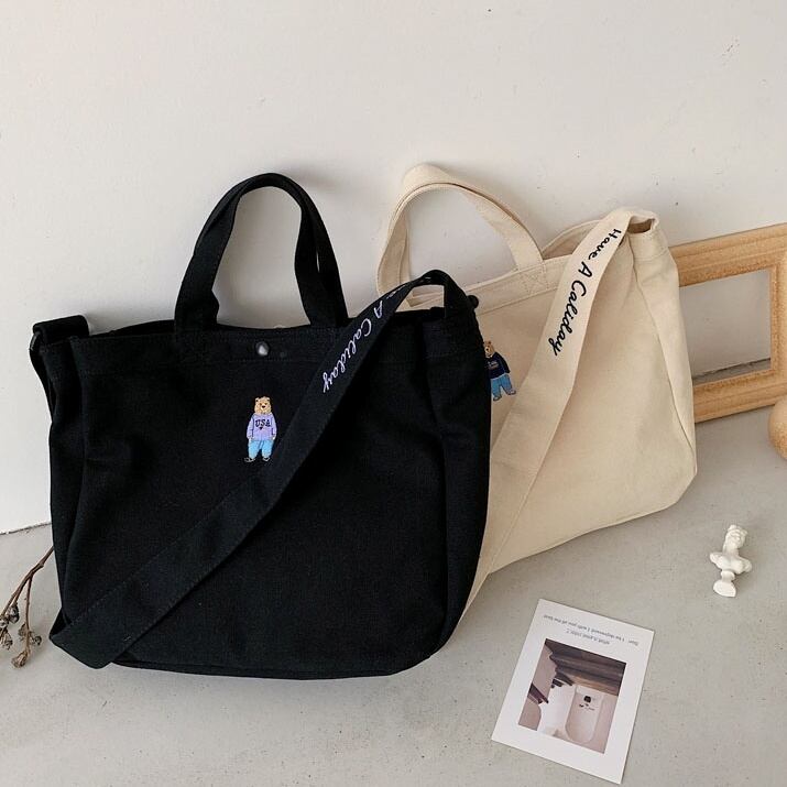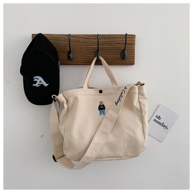 トートバッグ 2way 2色 キャンパストート くまちゃん 刺繍 レディース 大容量 収納 ショルダーバッグ シンプル カジュアル ラフ かわいい 大人可愛い ブラック 黒 ベージュ マチ 機能性 ポケット 内ポケット 収納 たっぷり 映え SNS 女子会 デート ОL 通勤 仕事 学生 学校 スクール バッグ 鞄 カバン 軽量 軽い サブバッグ お洒落 オシャレ こなれ感 オールシーズン 春 夏 秋 冬 買い物 ショッピング ママ 主婦 学生 大きめ 大きい スクエア 新作 2023 テディベア
