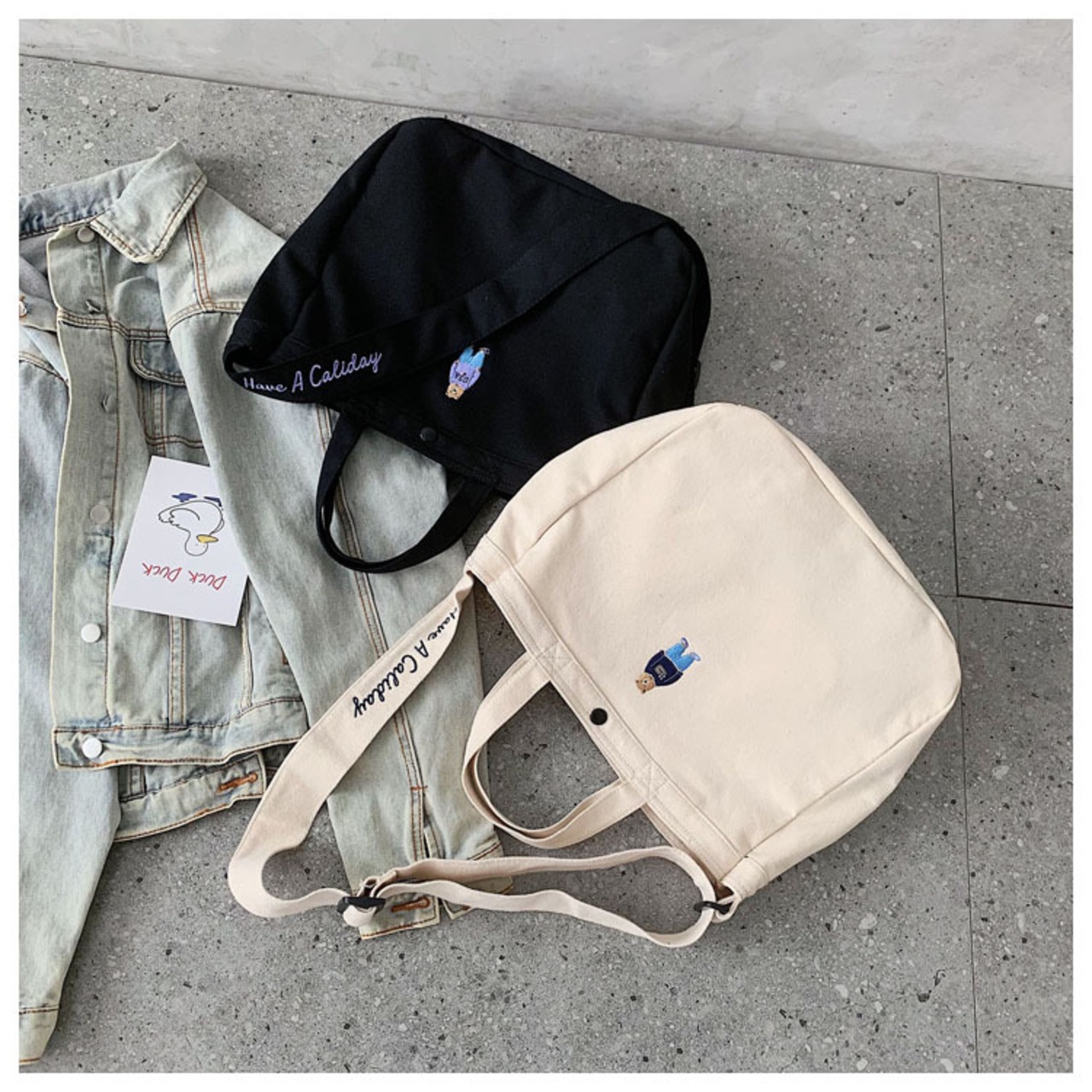 くまちゃん刺繍のワンポイントが可愛いキャンパストートです。