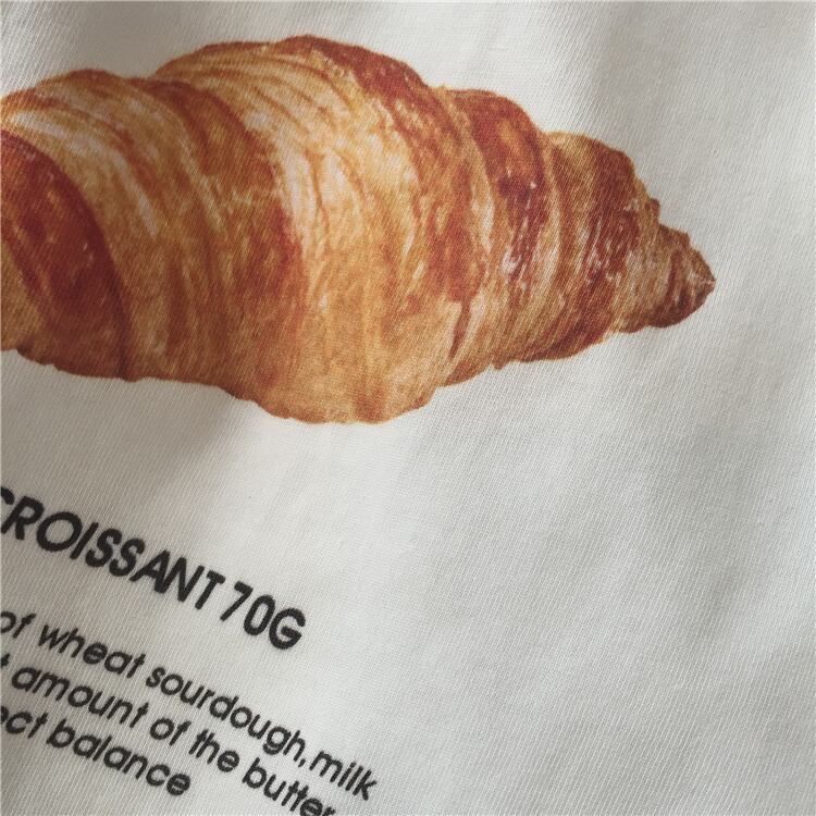 2色カラバリ、クロワッサンプリントのロンT。