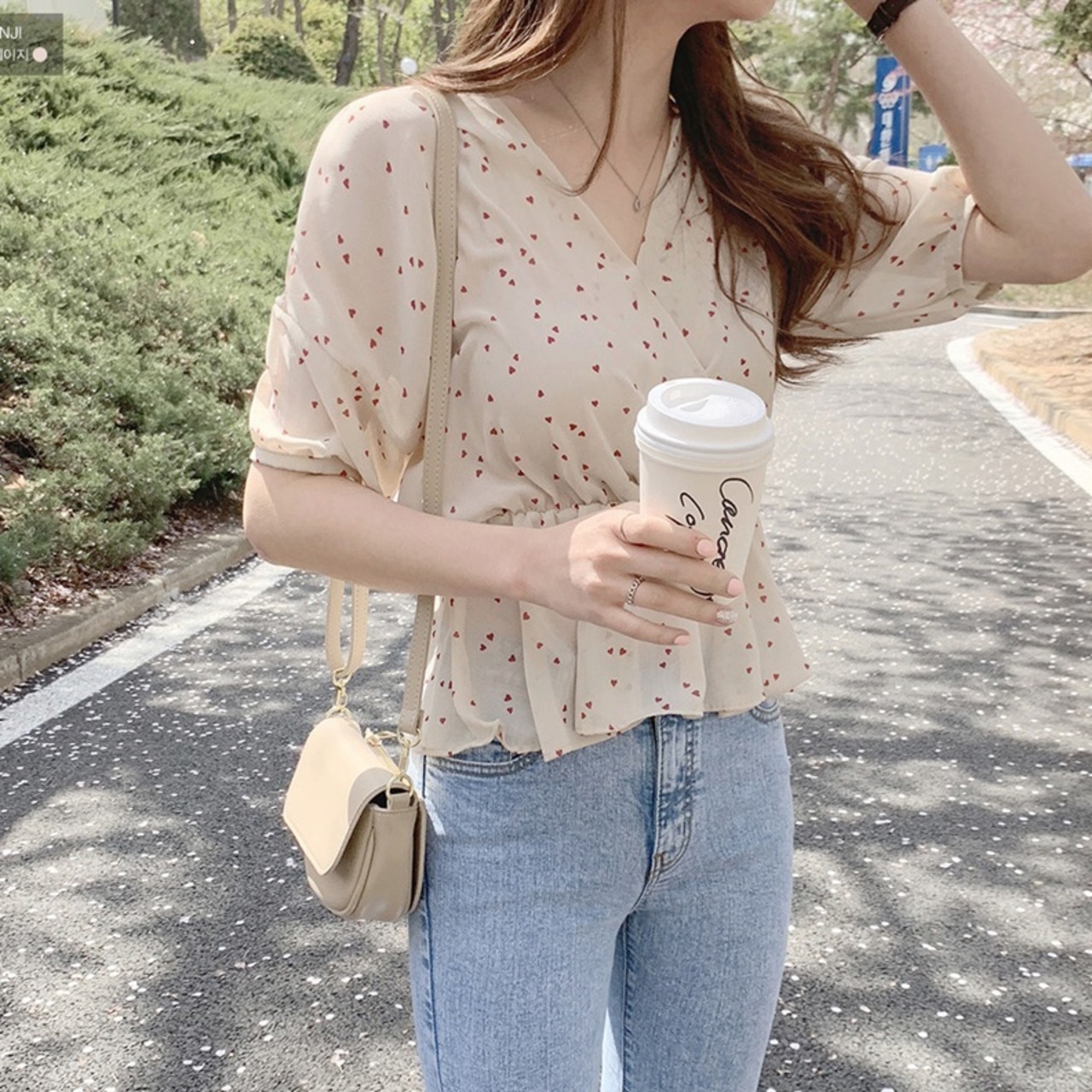 トップス ブラウス シフォン ハート カットソー 半袖 レディース クロス ふんわり きれいめ 上品 清楚 清潔感 エレガント お洒落 オシャレ フェミニン ガーリー フェアリー かわいい 大人可愛い 10代 20代 30代 40代 ОL 通勤 シンプル カジュアル 春 夏 秋 こなれ感 休日 お出かけ 買い物 女子会 デート モテ 韓国 トレンド 流行 無地 黒 ブラック ベージュ 薄手 映え SNS 写真 繊細 S М L XL Vネック くすみカラー 新作 2022 着痩せ ショート丈