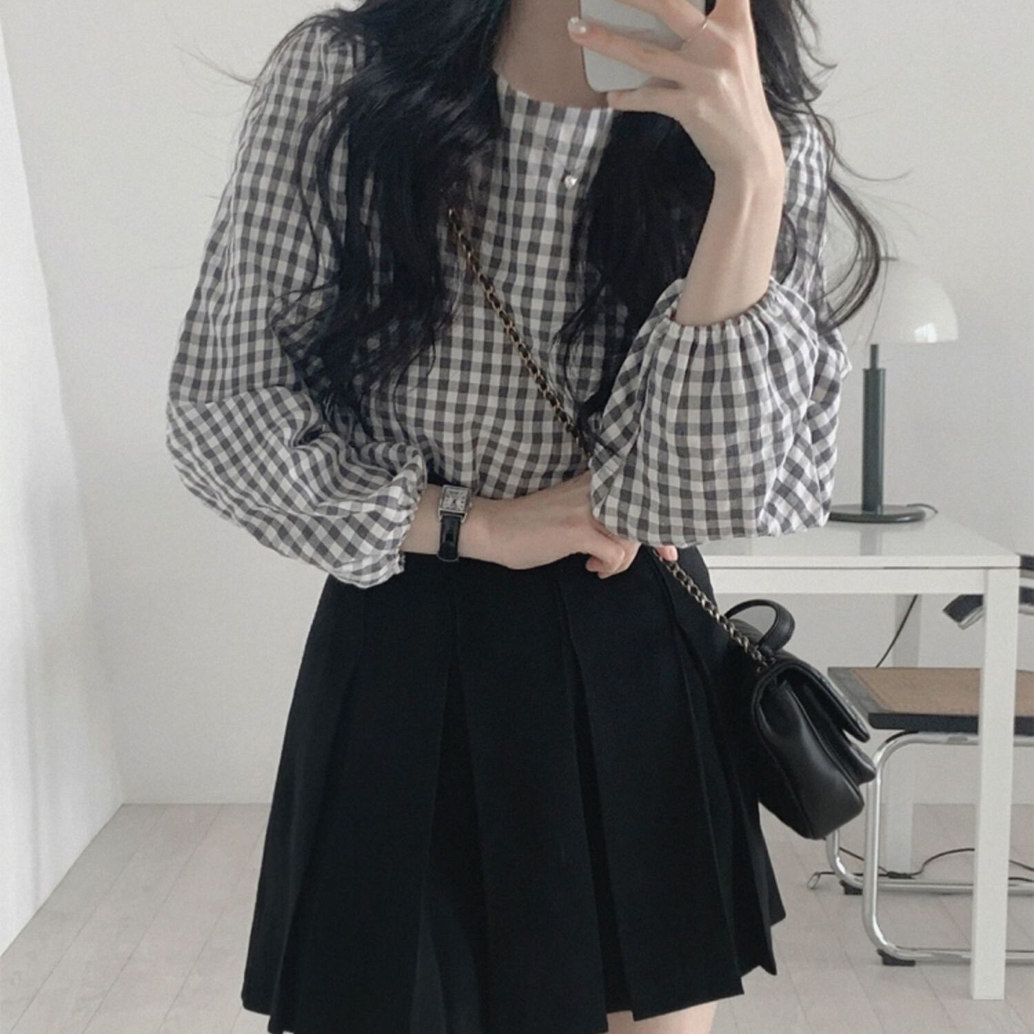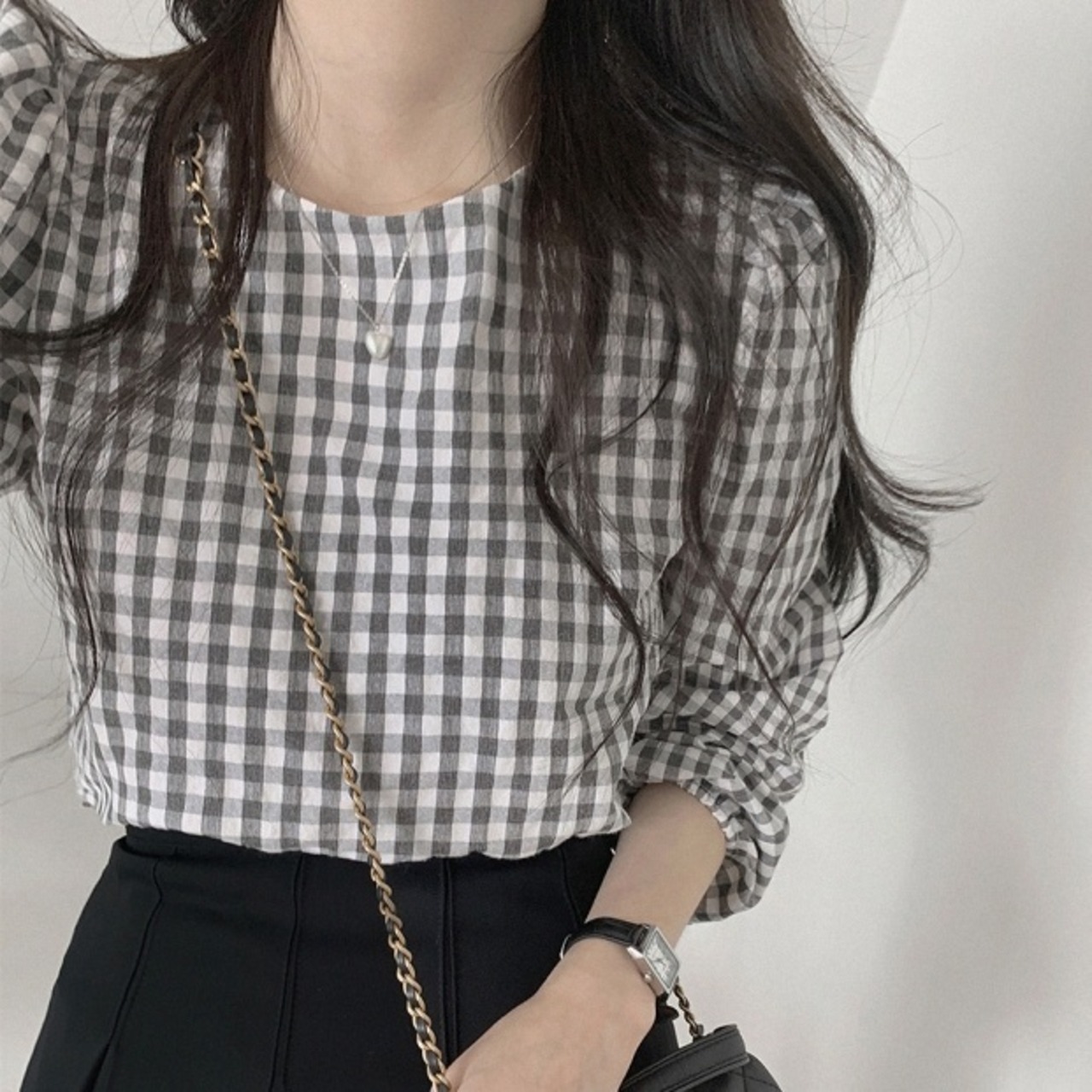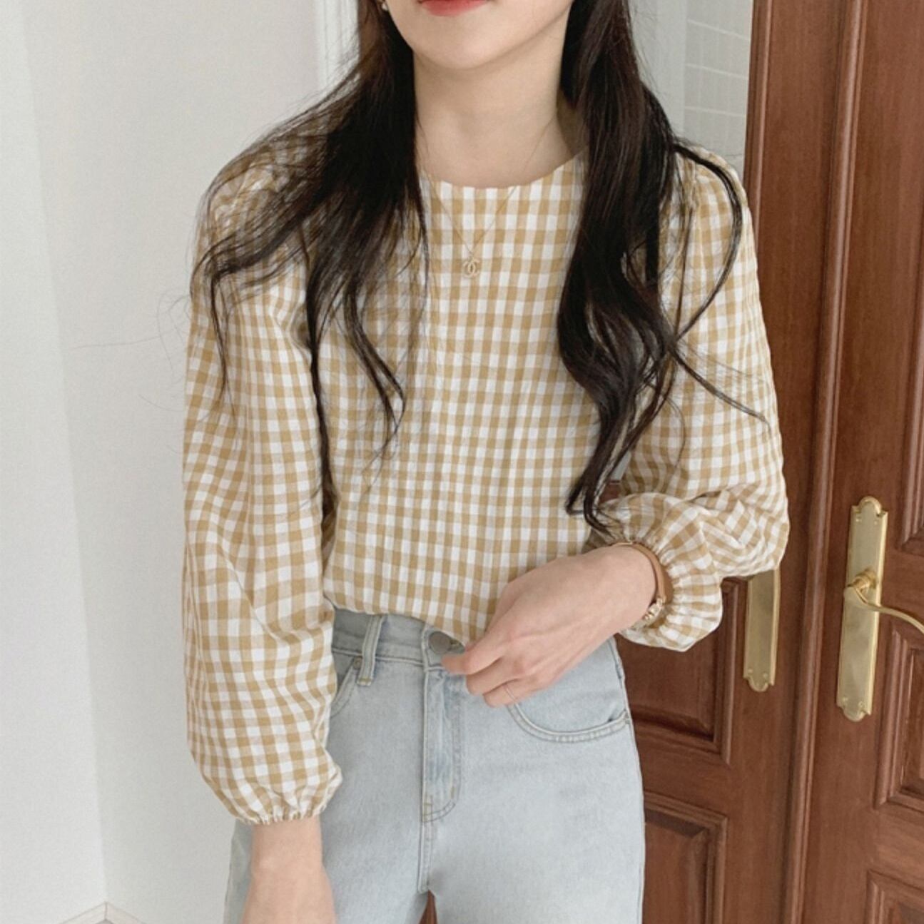トップス ブラウス ギンガムチェック 2色 長袖 レディース エレガント 上品 清楚 きれいめ かわいい 大人可愛い ガーリー フェミニン フェアリー カジュアル お洒落 オシャレ ゆったり 体型カバー 着痩せ 黒 ブラック ベージュ チェック柄 韓国 トレンド 流行 春 夏 秋 レトロ ヴィンテージ アンティーク 10代 20代 30代 40代 50代 こなれ感 清潔感 S М L XL 2XL 休日 お出かけ 大きめ 大きいサイズ 量産型 ギャザー くしゅ ふんわり 新作 2023