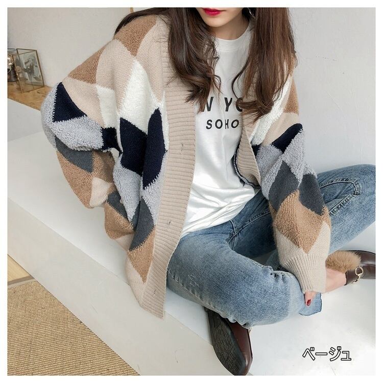 トップス カーディガン 3色 ニット アーガイル レディース もこもこ ふわふわ Vネック 長袖 ロング丈 オシャレ お洒落 かわいい 大人可愛い ガーリー 個性的 20代 30代 40代 50代 着回し 重ね着 シンプル カジュアル ラフ 総柄 レッド 赤 ベージュ ネイビー 紺 華奢 細見え 春 秋 冬 抜け感 こなれ感 レトロ アンティーク ヴィンテージ 柔らか 着心地 学生 チェック柄 シック モダン くすみカラー 新作 2023 ゆったり 大きめ ドロップショルダー 派手 存在感 映え SNS