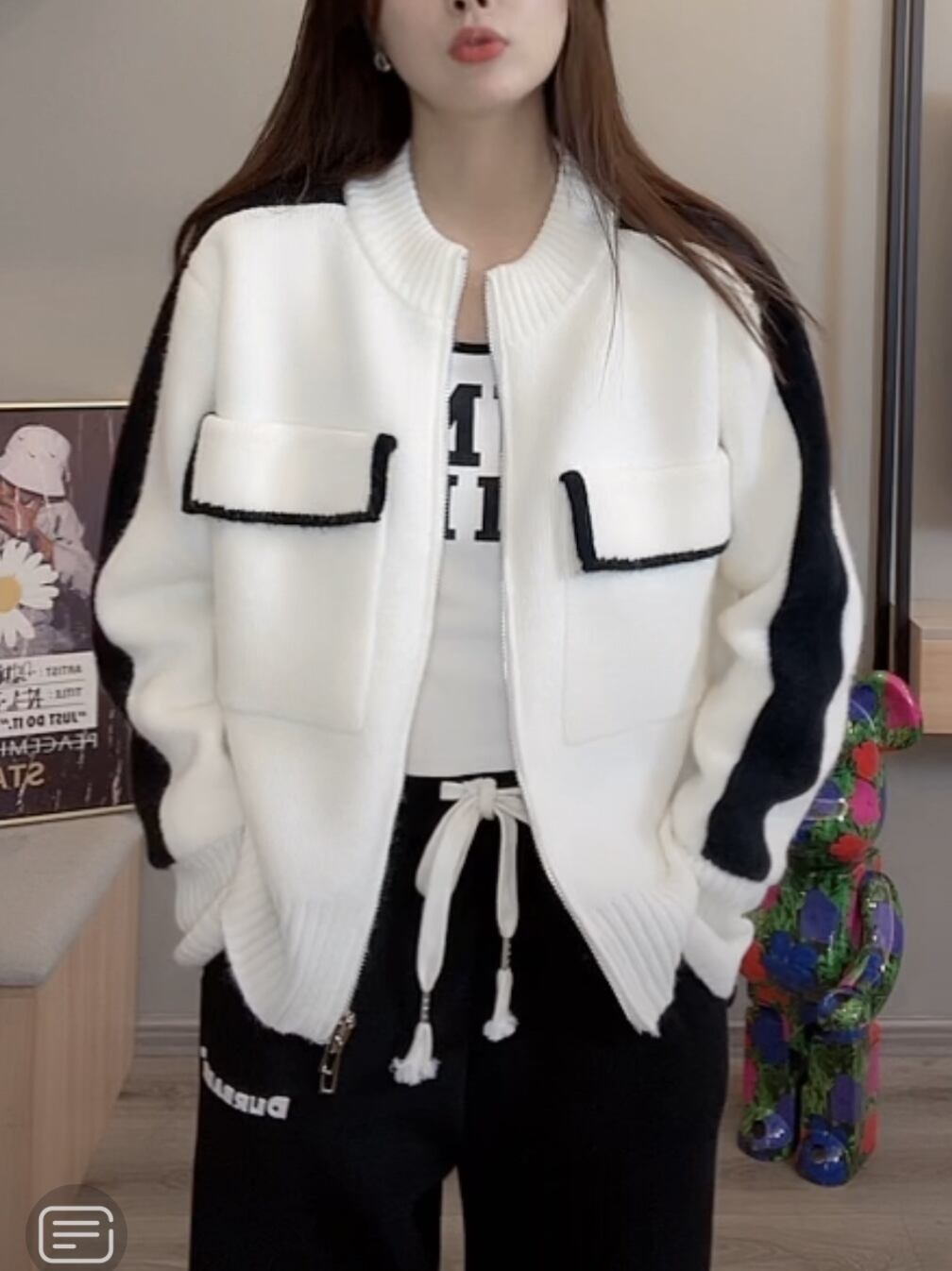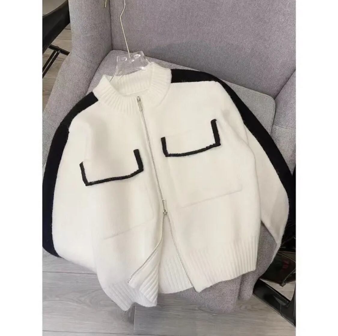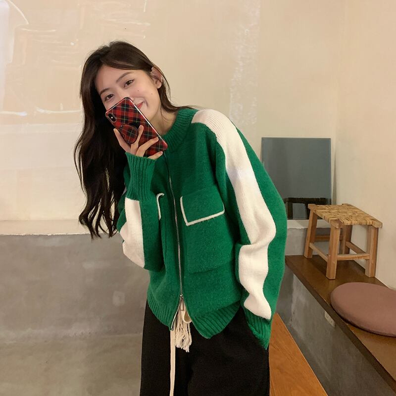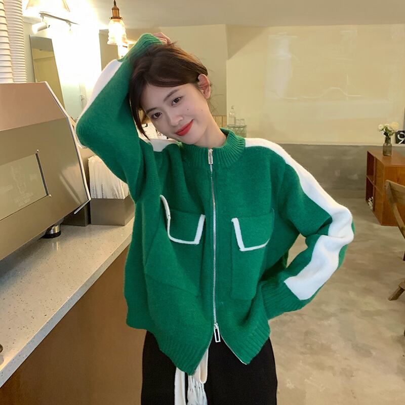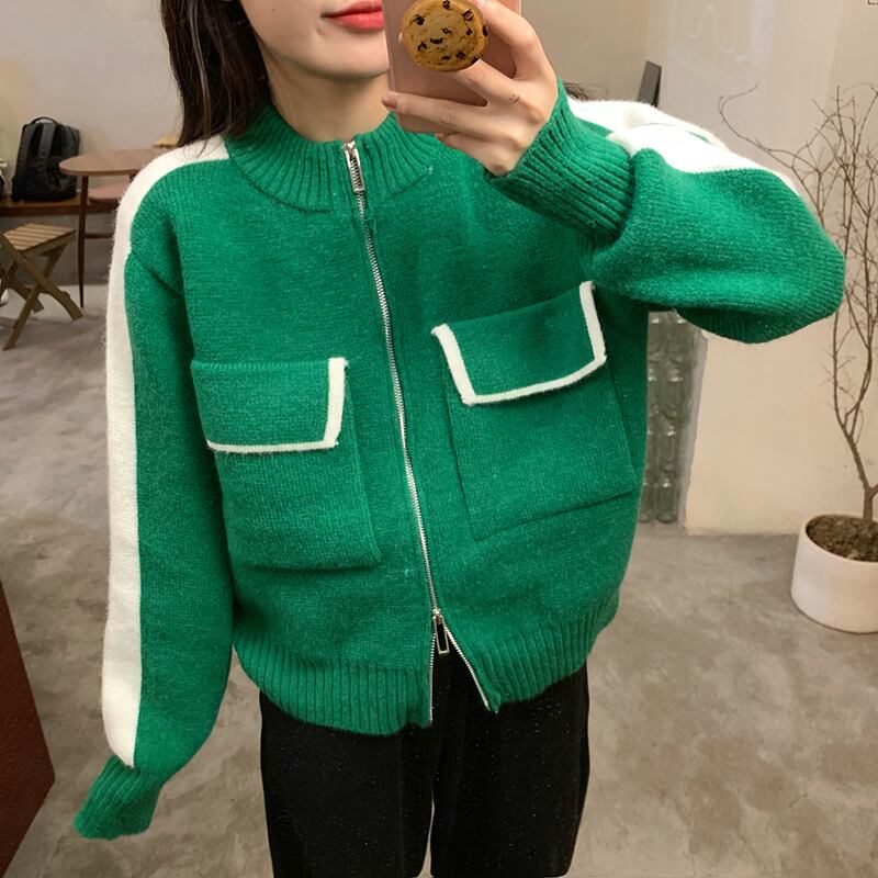 トップス アウター レディース カーディガン ニット 長袖 ライン ポケット ダブルジップ ジップアップ ハイネック かわいい カジュアル おしゃれ お洒落 かっこいい レトロ こなれ感 ラフ メンズライク ボーイッシュ スポーティー 抜け感 S M L XL 2XL グリーン 緑 ブラック 黒 ホワイト 白 春 秋 冬 10代 20代 30代 学生 通学 休日 リラックス アウトドア 旅行 定番 楽ちん あったか 暖かい 防寒 重ね着 普段使い 着回し 韓国 オルチャン