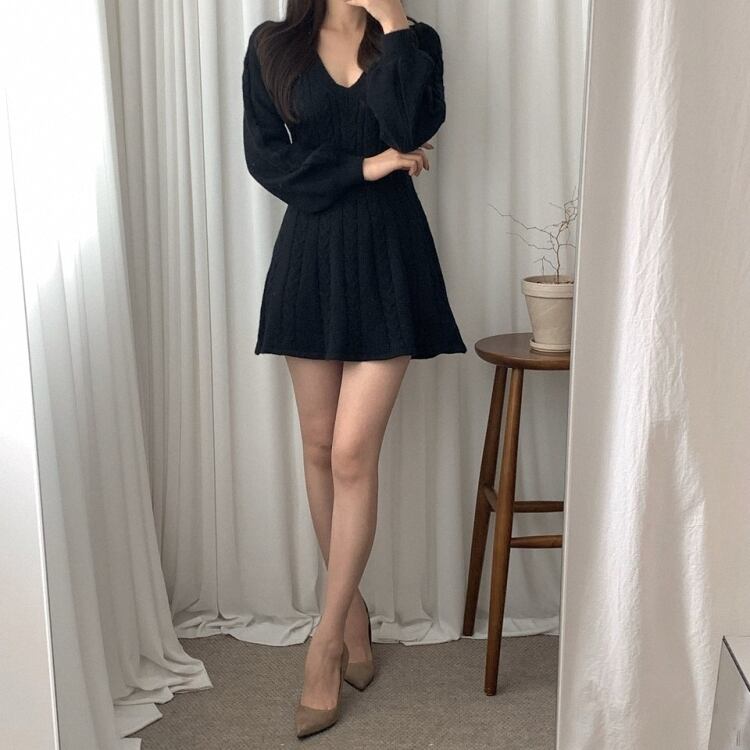 ワンピース ニット ケーブルニット ミニ丈 4色 Aライン レディース Vネック ショート丈 ギャル お洒落 オシャレ かわいい 大人可愛い セクシー シンプル カジュアル ボリューム 袖 無地 ピンク ホワイト 白 ベージュ ブラック 黒 ブラウン 茶色 膝上 10代 20代 30代 40代 春 秋 冬 韓国 トレンド 流行 シンプル カジュアル こなれ感 ルーズ ゆる デート モテ 女子会 休日 ショッピング 映え SNS 楽ちん とろみ 大人女子 体型カバー 着痩せ 細見え 華奢 鎖骨 デコルテ