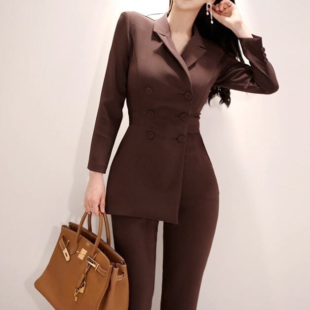 パンツスーツ セットアップ レディース ツーピース 2点セット 上下セット スーツ ロング丈 ジャケット 細身 タイト スリム ブラウン 茶色 黒 ブラック かわいい 大人可愛い きれいめ 上品 エレガント フォーマル クール 知的 マニッシュ 春 夏 秋 冬 オールシーズン 二次会 お呼ばれ 披露宴 パーティー オフィス 仕事 OL 通勤 デート お出かけ 女子会 休日 体型カバー 普段使い 定番 トレンド 入園 入学 卒園 卒業 アウター ボトムス Vネック S М L XL