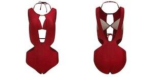 スタイルアップ効果も期待できそうなウエストと胸元の大胆なカットライン◎