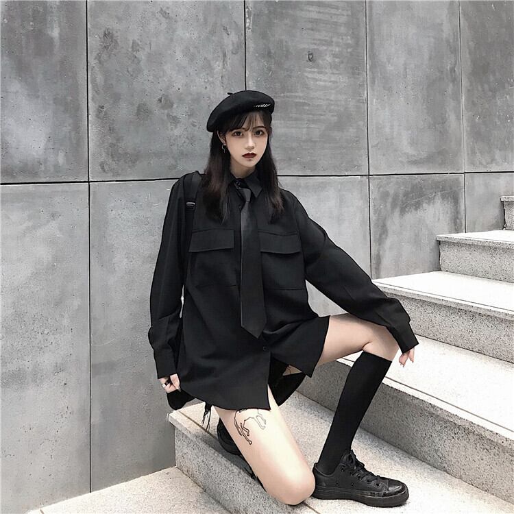 トップス ブラウス ロングシャツ オーバーサイズ 長袖 ゆったり レディース ロング丈 大きめ М L お洒落 オシャレ かわいい 大人可愛い 10代 20代 30代 40代 シンプル カジュアル ラフ 春 秋 夏 冬 こなれ感 量産 地雷 ロック パンク ゴシック 女子会 韓国 トレンド 流行 Iライン ストレート 体型カバー 着痩せ 映え SNS 着回し 薄手 抜け感 無地 黒 ブラック チュニック 前開き ボタン ルーズ ゆる リラックス ポケット 襟付き 新作 2022 クール メンズライク