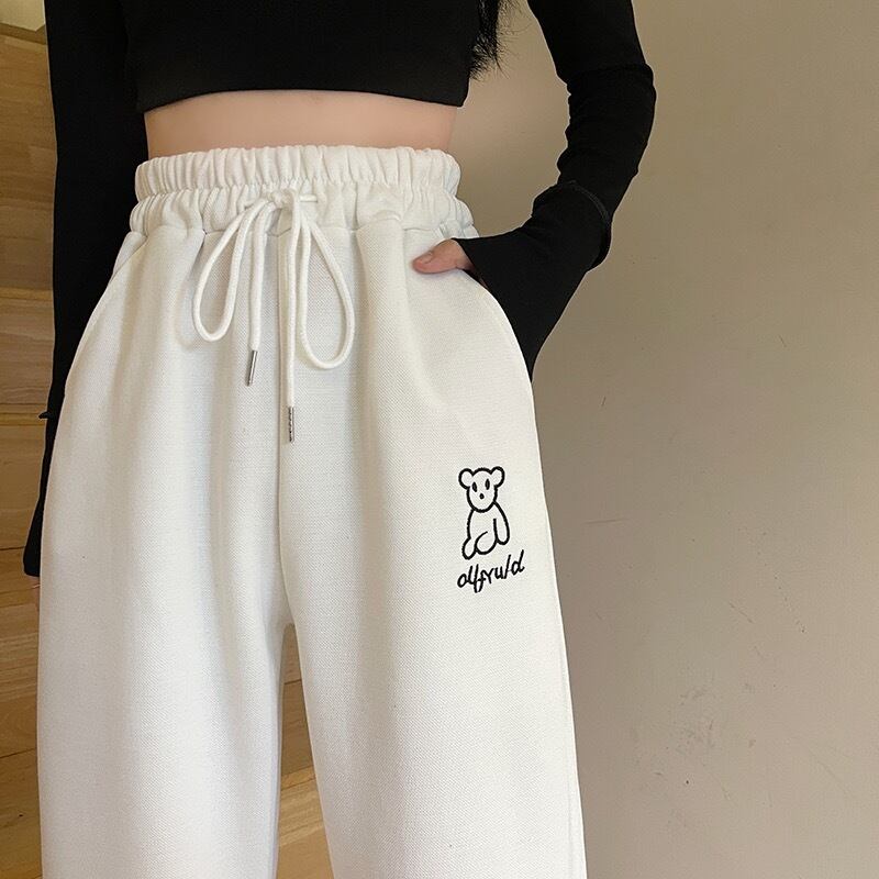 ボトムス パンツ 3色 くまちゃん テディベア ストレートパンツ レディース ハイウエスト 大人可愛い かわいい シンプル カジュアル ラフ おしゃれ こなれ感 無地 春 夏 秋 冬 オールシーズン 10代 20代 30代 40代 50代 普段使い 普段着 体系カバー 着痩せ 細見え 美脚 脚長 定番 シンプル カジュアル S M L XL 2XL 無地 ブラック 黒 グレー 灰色 ホワイト 白 ウエストゴム 楽ちん ゆったり スポーツ 運動 部活 ジム 部屋着 ルームウェア クマ 熊