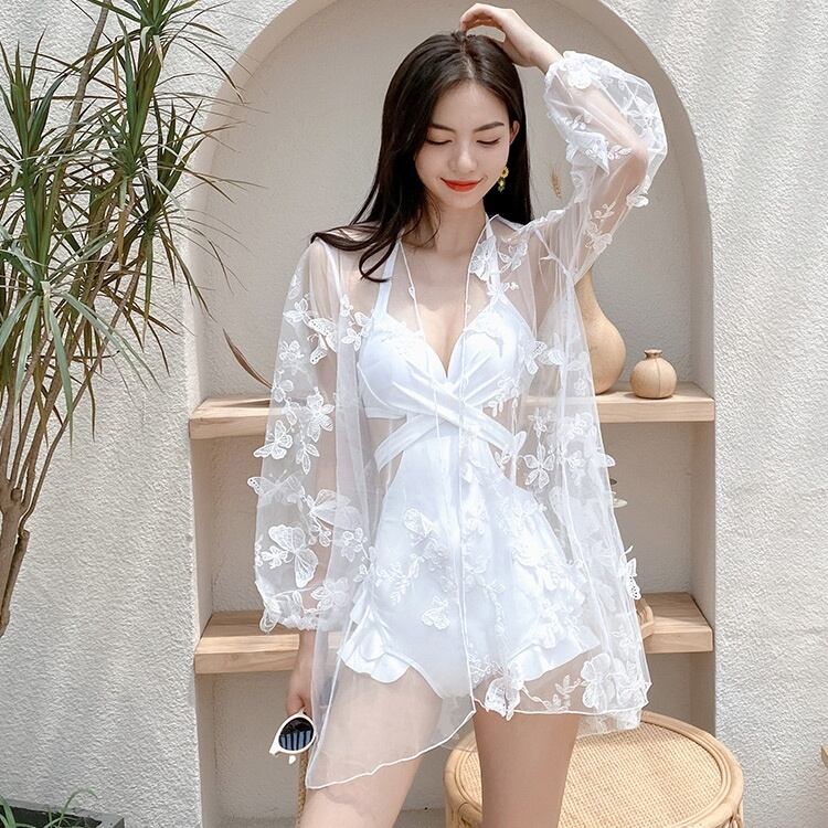 水着 ワンピース 3色 2点セット カーディガン 羽織 ガウン レディース モノキニ レース きれいめ エレガント カジュアル 10代 20代 30代 40代 50代 トレンド 流行 韓国 セクシー お洒落 オシャレ かわいい 大人可愛い 大人女子 色っぽ 学生 スクール ОL 個性派 個性的 大人 色気 プール 海 海水浴 ナイトプール 映え SNS インスタ映え М L XL 黒 ブラック 白 レッド 赤 モテ スタイルアップ 体型カバー 着痩せ 透け感 シアー UV 日焼け 高級感 クロスデザイン