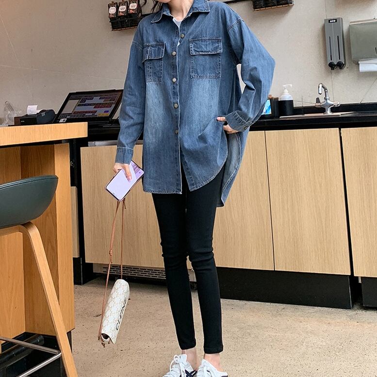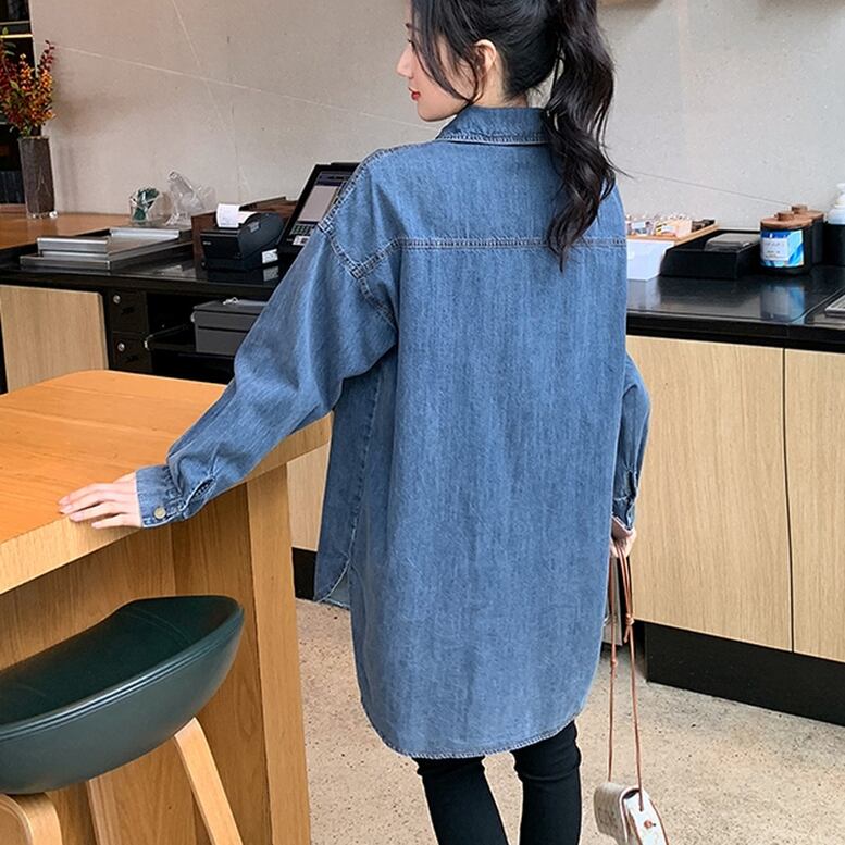 こなれた雰囲気で体型カバーしてくれるロングデニムシャツ
