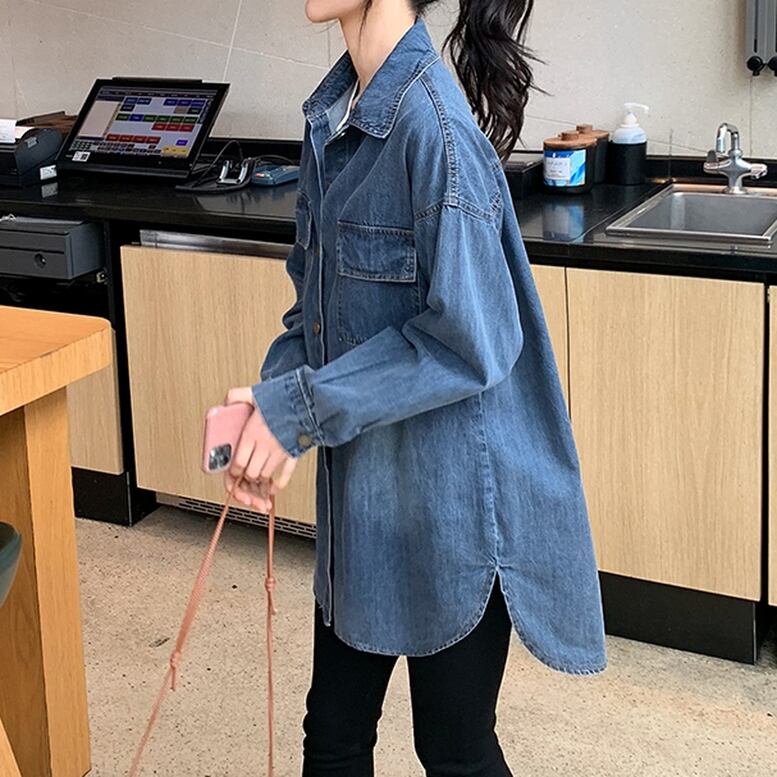 デニムシャツ トップス レディース シャツ デニム チュニック丈 サイドスリット 襟付き 長袖 ドロップショルダー 羽織り ライトアウター 青 ブルー 大人可愛い きれいめ 上品 エレガント ガーリー マニッシュ ルーズ キュート レトロ クール 大人女子 ハンサム おしゃれ シンプル カジュアル かっこいい 春 夏 秋 冬 二次会 オフィス OL 通勤 学生 通学 デート お出かけ パーティー イベント 休日 アウトドア 体型カバー 普段使い 定番 トレンド オーバーサイズ ゆったり インスタ映え
