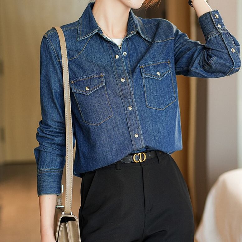 デニムシャツ トップス レディース シャツ デニム 襟付き 長袖 デニムブラウス スリム スタイリッシュ ハンサム 青 ブルー 大人可愛い きれいめ 上品 エレガント ガーリー マニッシュ ルーズ キュート レトロ クール 大人女子 こなれ感 おしゃれ シンプル カジュアル かっこいい 春 夏 秋 冬 二次会 オフィス OL 通勤 学生 通学 デート お出かけ パーティー イベント 休日 旅行 アウトドア 体型カバー モテ 普段使い 定番 トレンド ゆったり インスタ映え 大人カラー ニュアンスカラー