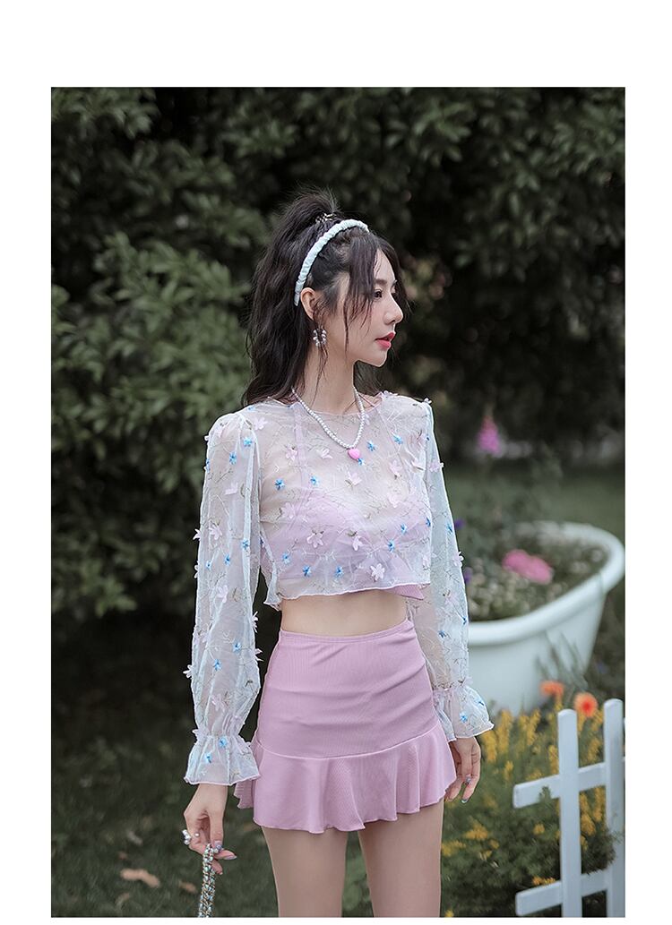 シースルーのクロップド丈刺繍トップスがキュート♪