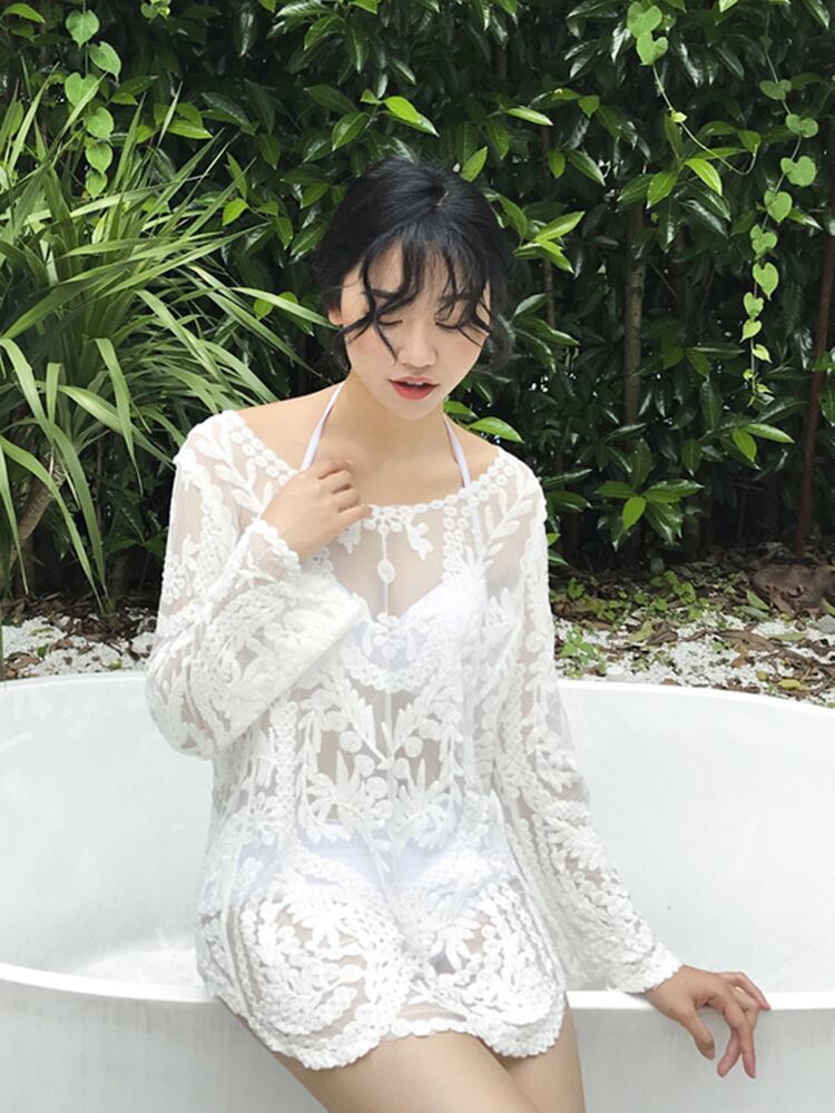 水着 スイムウエア レディース モノキニ ビキニ 体型カバー水着 羽織 シースルーブラウス プルオーバー セパレート ホルターネック ハイウエスト 3点セット 透け感 刺繍 谷間 胸元 谷間魅せ 大人可愛い きれいめ セクシー sexy 華やか 大人 大人っぽい おしゃれ お洒落 存在感 ナチュラル M L XL 2XL ブラック 黒 ホワイト 白 4way 2way 10代 20代 30代 40代 夏 海 ビーチ プール リゾート 旅行 プレゼント ギフト 着痩せ 着やせ スタイルアップ 美スタイル