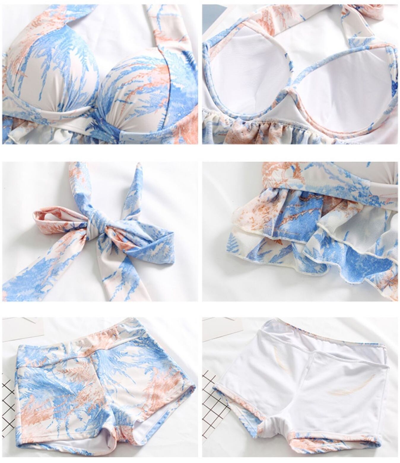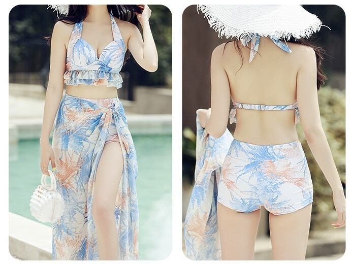 水着 ビキニ 2点セット パレオ レディース フリル リボン ホルターネック 上品 きれいめ エレガント こなれ感 カジュアル 10代 20代 30代 40代 50代 トレンド 流行 韓国 セクシー お洒落 オシャレ かわいい 大人可愛い 大人女子 色っぽ 学生 スクール ОL 個性的 大人 色気 プール 海 海水浴 ナイトプール 映え SNS М L XL 2XL ブルー 青 水色 スタイルアップ 体型カバー 着痩せ 透け感 シアー 高級感 クロスデザイン ハイウエスト 盛り 谷間 ボタニカル 花柄