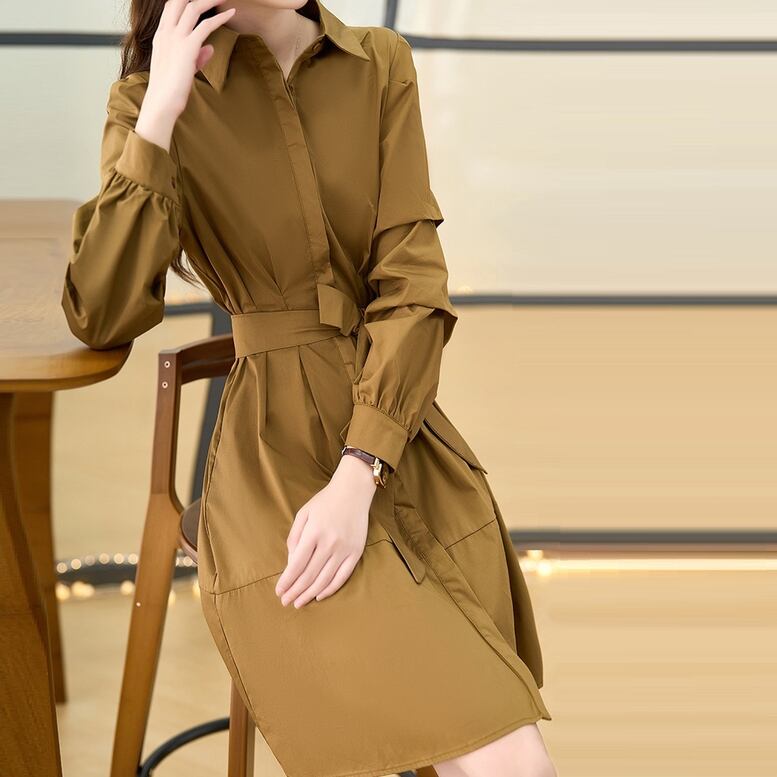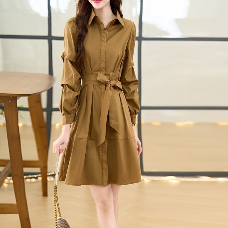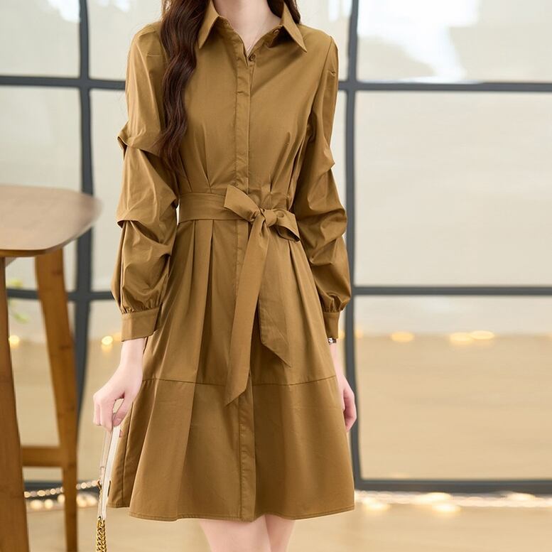 ワンピース ミディアムシャツワンピース レディース シャツワンピース ひざ上丈 ショート丈 ウエストリボン シャツドレス 襟付き 長袖 スリム 無地 フェミニン 茶色 ブラウン 大人可愛い きれいめ 上品 エレガント フォーマル ガーリー 大人女子 おしゃれ シンプル カジュアル 春 夏 秋 冬 二次会 お呼ばれ ビジネス オフィス OL 通勤 学生 通学 デート お出かけ パーティー イベント 女子会 休日 旅行 体型カバー 美脚 モテ 普段使い 定番 トレンド ゆったり インスタ映え ベイクドカラー