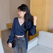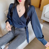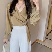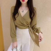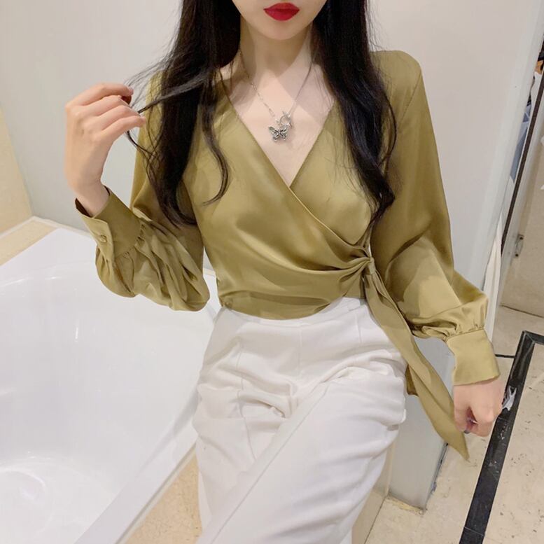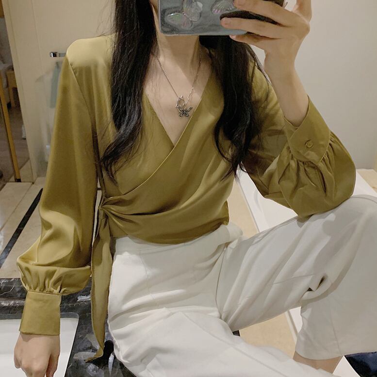 カシュクールシャツ トップス レディース シャツ ブラウス ボリュームスリーブ 長袖 Vネック ラップシャツ サイドリボン 無地 スタイリッシュ フェミニン 黄色 紺 ジンジャーイエロー ネイビー 大人可愛い きれいめ 上品 エレガント フォーマル ガーリー マニッシュ ルーズ クール 大人女子 おしゃれ シンプル カジュアル 春 夏 秋 冬 二次会 オフィス OL 通勤 学生 通学 デート お出かけ パーティー イベント 女子会 休日 体型カバー モテ 普段使い 定番 トレンド ゆったり インスタ映え