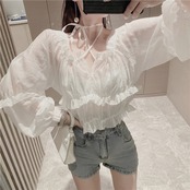フリルシャーリングブラウス トップス レディース ブラウス シャツ フリル ボリュームスリーブ シフォンブラウス シアーブラウス 長袖 オフショルダー シースルー クロップドブラウス リボン 無地 ピンク ホワイト 白 大人可愛い きれいめ 上品 エレガント ガーリー ルーズ キュート 大人女子 おしゃれ カジュアル 春 夏 秋 冬 二次会 オフィス OL 通勤 学生 通学 デート お出かけ パーティー イベント 女子会 休日 旅行 体型カバー モテ 普段使い 定番 トレンド ゆったり インスタ映え