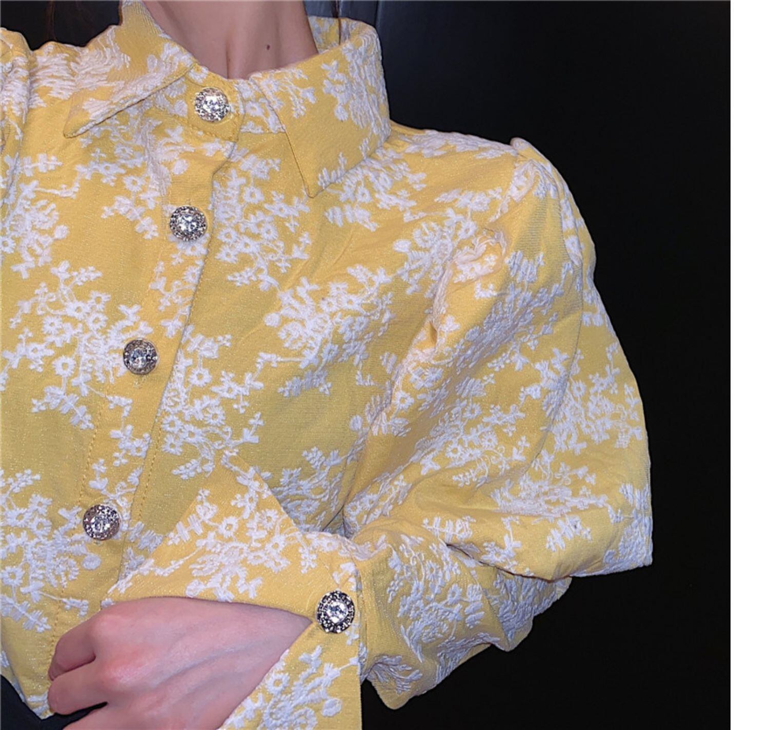 トップス ブラウス 刺繍 長袖 レディース パフスリーブ ビジュー 薄手 春 秋 冬 長袖 シャツ カットソー 大きめ ゆったり S М L シンプル 上品 清楚 きれいめ エレガント フェミニン オシャレ お洒落 カジュアル ОL オフィス 仕事 通勤 白シャツ 20代 30代 40代 50代 60代 かわいい 大人可愛い 着回し デート 女子会 こなれ感 個性的 個性派 モダン アンティーク ヴィンテージ レトロ ボリューム 袖 黄色 イエロー 花 フラワー 華やか キラキラ デザイン ボタン
