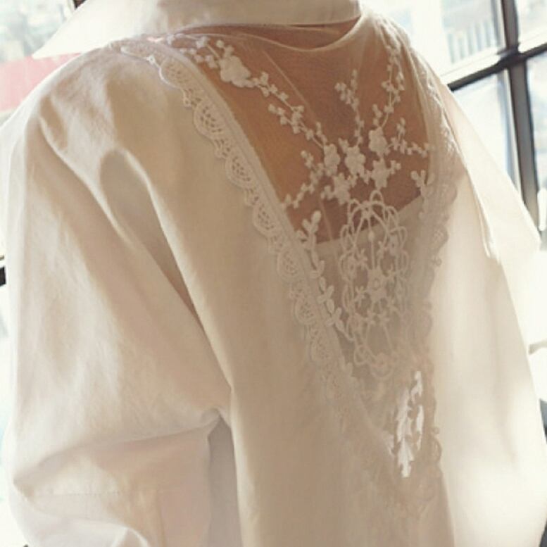 背中で大胆に透けるレースが目を惹かれるシャツ