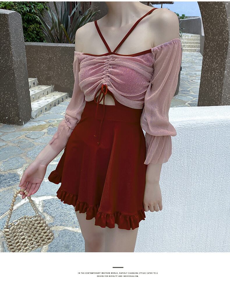 水着 スイムウエア レディース ワンピース水着 体型カバー水着 長袖 ホルターネック シャーリング フリル リボン ラメ 透け感 シフォン オフショルダー オフショル スクエアネック 2way スカパン 谷間 胸元 谷間魅せ 盛れる バックシャン かわいい 大人可愛い きれいめ セクシー sexy ナチュラル 大人 大人っぽい おしゃれ お洒落 存在感 ラブリー M L XL 黒 ブラック 青 ブルー 赤 レッド 10代 20代 30代 40代 ママ ビーチ 海 夏 プール リゾート 旅行