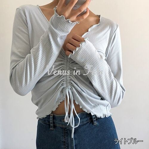 中心できゅっと絞ったとろみのあるデザインで、ハイウエストのボトムスとの相性が抜群です!
