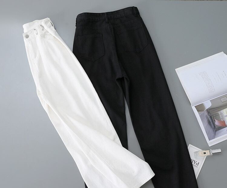 ボトムス パンツ 2色 サイズ調節 フック付き レディース ハイウエスト ストレート ゆったり シンプル カジュアル ラフ こなれ感 オシャレ お洒落 きれいめ 美脚 脚長 着回し クール オールシーズン 春 夏 秋 冬 10代 20代 30代 40代 50代 かっこいい ポケット 白 ホワイト 黒 ブラック 女子会 ズボン ロング丈 ジーパン 新作 2021 定番 王道 S М L XL 大きいサイズ Gパン レトロ アンティーク ヴィンテージ 韓国 流行 トレンド ウエスト 調整 調節