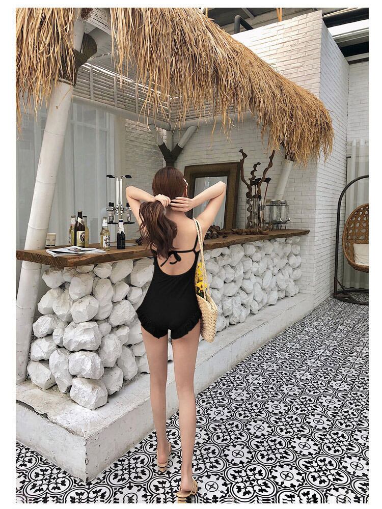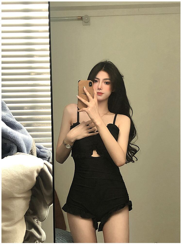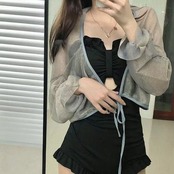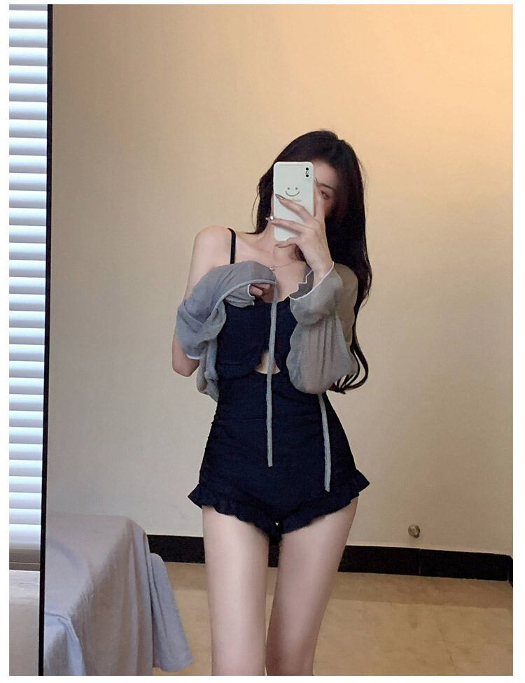 グレーシアーカーディガン付きブラックカラーワンピース水着。