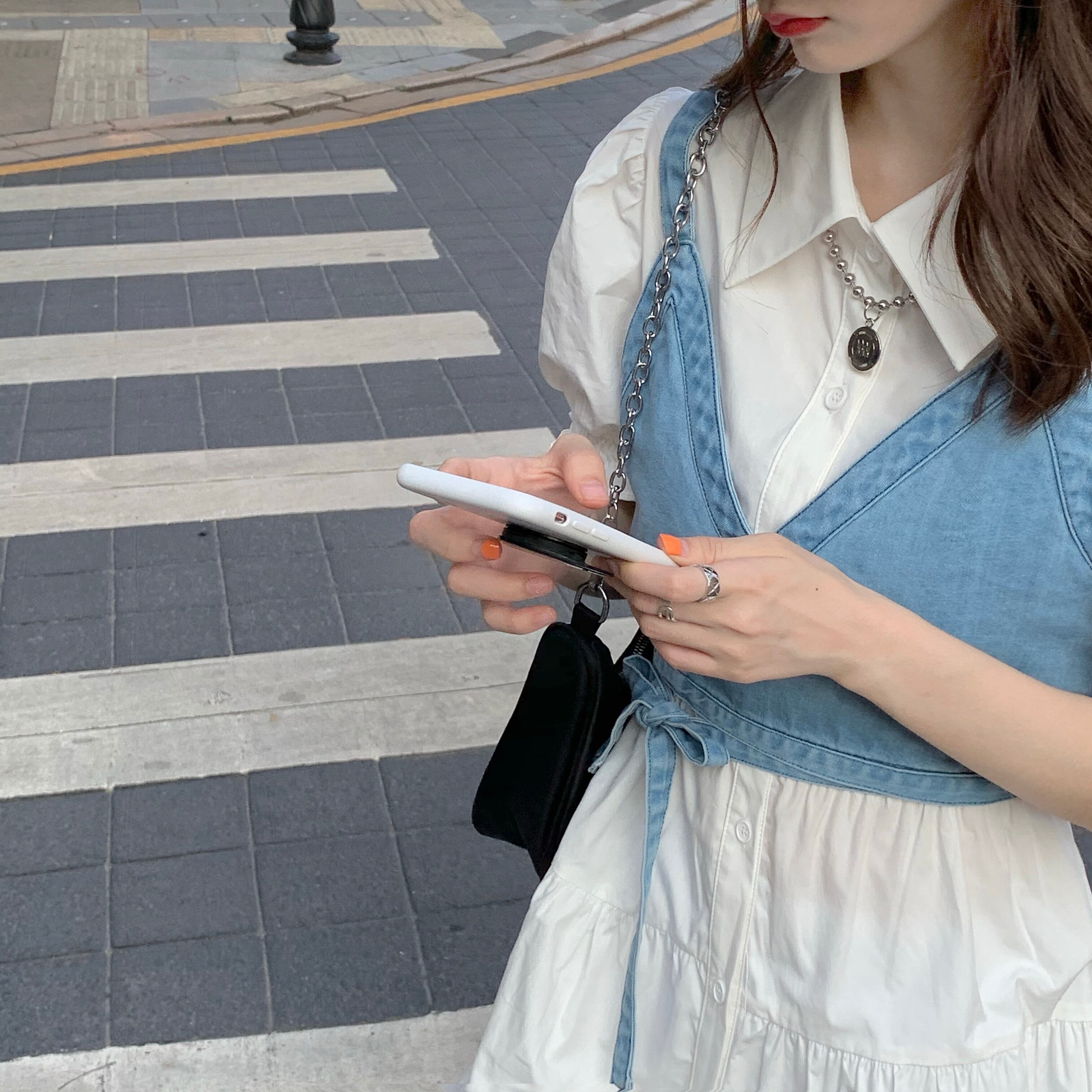 デニムベストは、リボンを結ぶ位置によって印象を変えることができます。