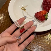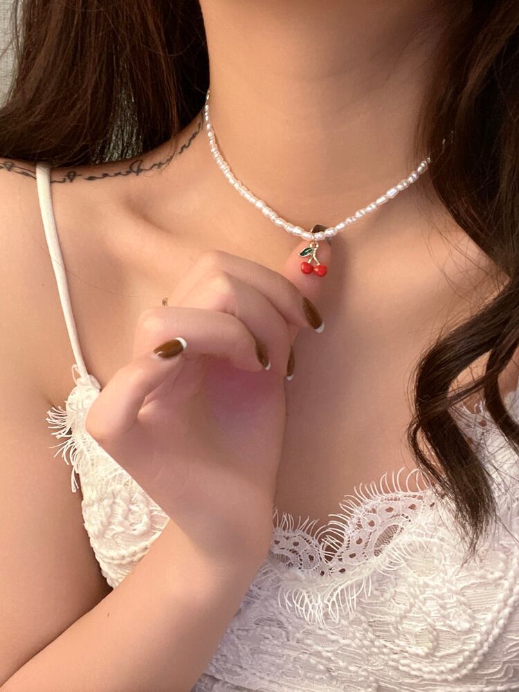 ネックレス レディース ペンダント 淡水パール調 真珠 チェリー サクランボ さくらんぼ チャーム 鎖骨 かわいい 大人可愛い おしゃれ お洒落 ガーリー ラブリー キュート フェミニン エレガント 存在感 お出かけ 女子会 休日 旅行 イベント パーティー ギフト プレゼント 定番 モテ 普段使い デイリー 学生 通学 プチプラ オールシーズン シーズンレス 10代 20代 30代