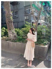 ワンピース レディース Aライン 半袖 5分袖 五分袖 パフスリーブ 襟なし クルーネック ラウンドネック フレア マキシ丈 ロング丈 シフォン 透け感 大人可愛い きれいめ ゴージャス 華やか 大人 上品 おしゃれ お洒落 大人女子 こなれ感 抜け感 エレガント フェミニン 清楚 存在感 S M L XL 黒 ブラック ベージュ 無地 春 夏 秋 10代 20代 30代 40代 デート お出かけ 女子会 休日パーティー イベント 旅行 リゾート モテ 韓国 オルチャン プレゼント ギフト