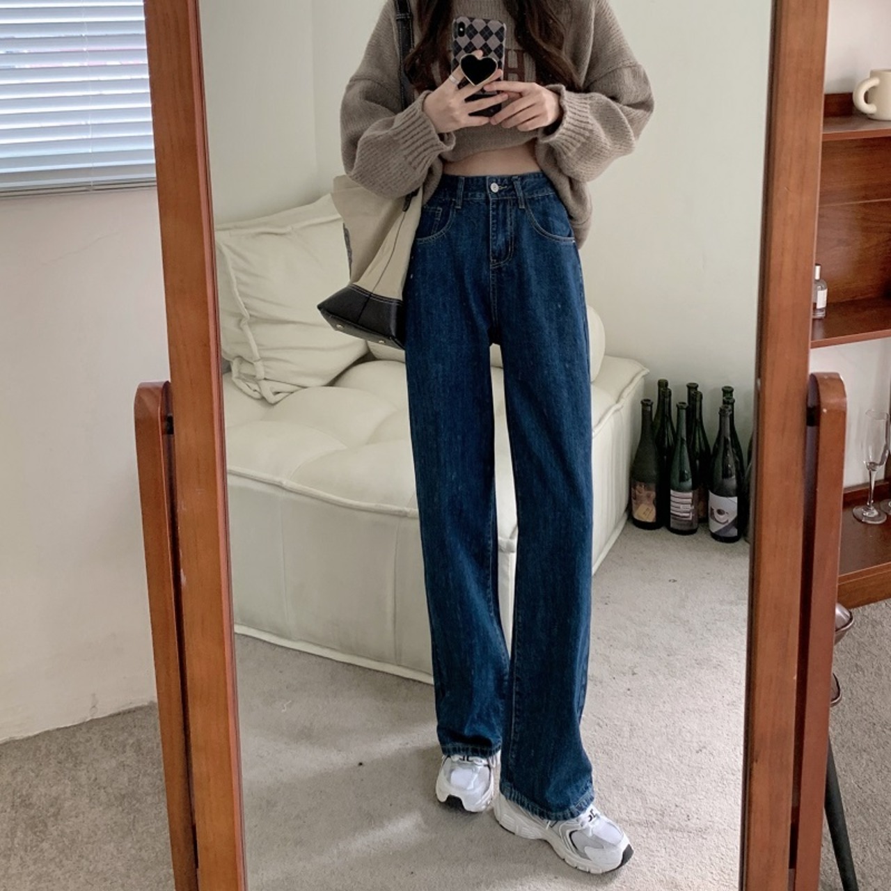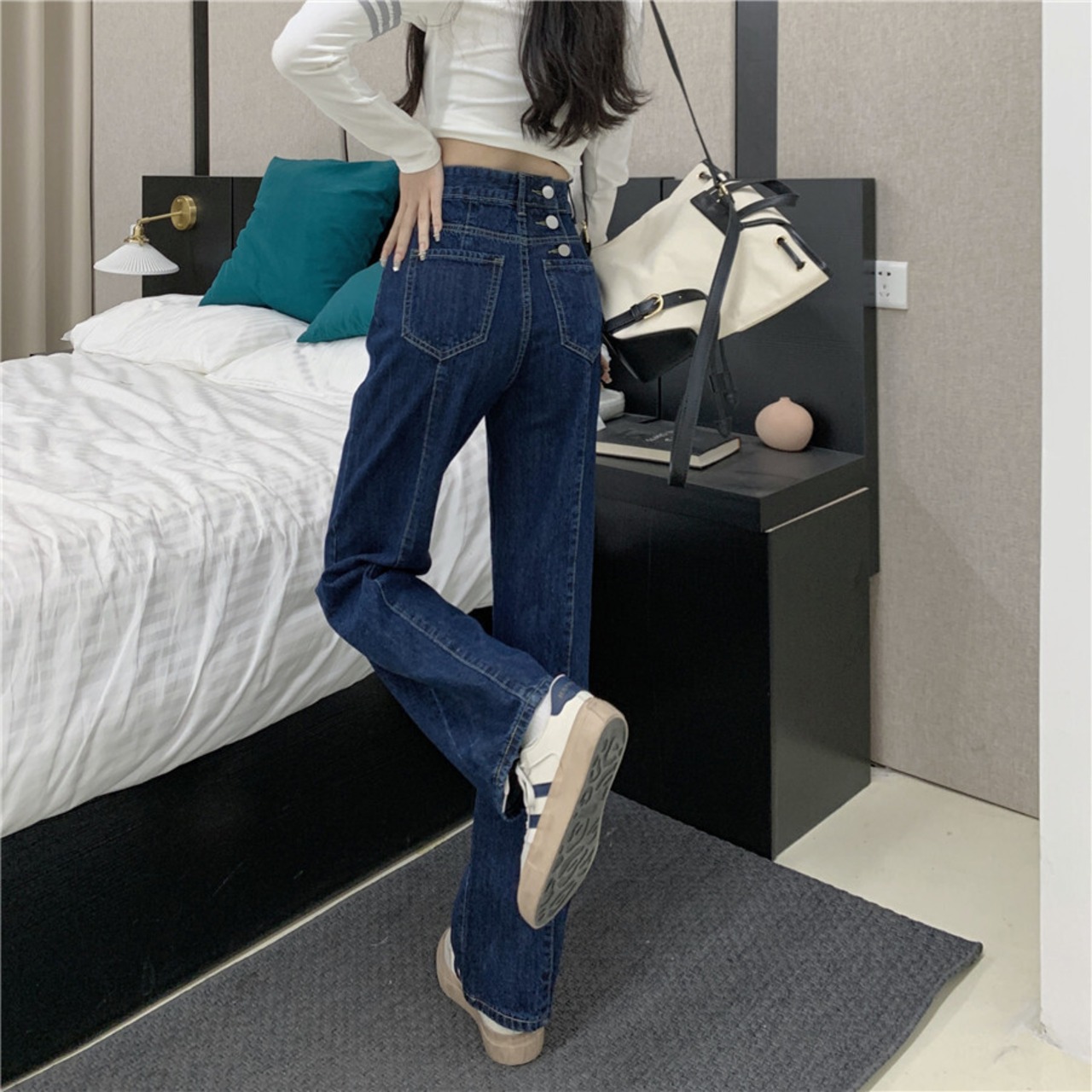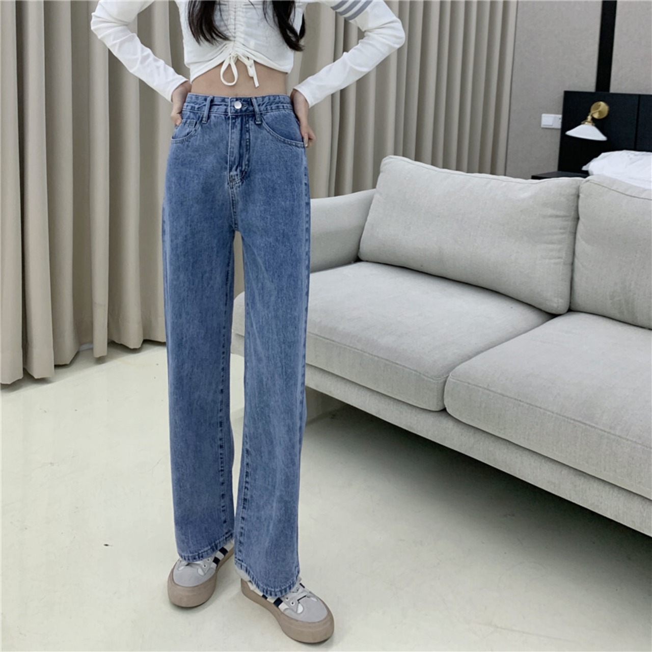 2色カラバリ、ワイドシルエットストレートデニムパンツ。