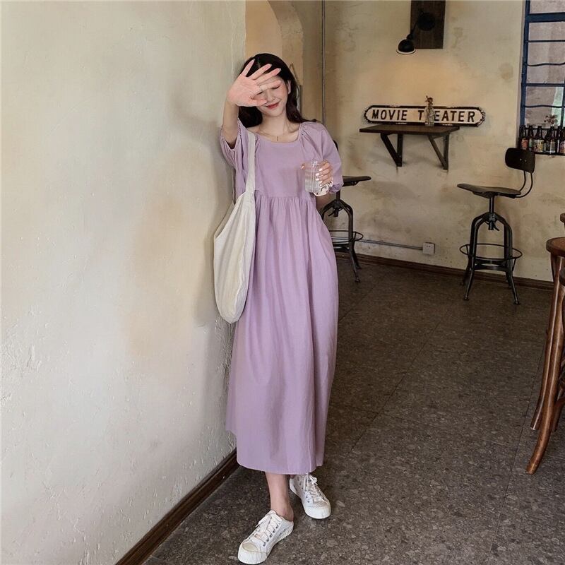ワンピース レディース 半袖 パフスリーブ ボリューム袖 ランタンスリーブ 襟なし スクエアネック ロング丈 バックリボン ギャザー ゆったり 大人可愛い シンプル カジュアル 大人 上品 おしゃれ お洒落 大人女子 こなれ感 ルーズ 抜け感 存在感 ワンサイズ フリーサイズ 白 アイボリー 藤色 紫 パープル ラベンダー すみれ色 無地 春 夏 秋 10代 20代 30代 40代 50代 デート お出かけ 女子会 休日 イベント 旅行 韓国 オルチャン 普段使い デイリー 楽ちん リゾート