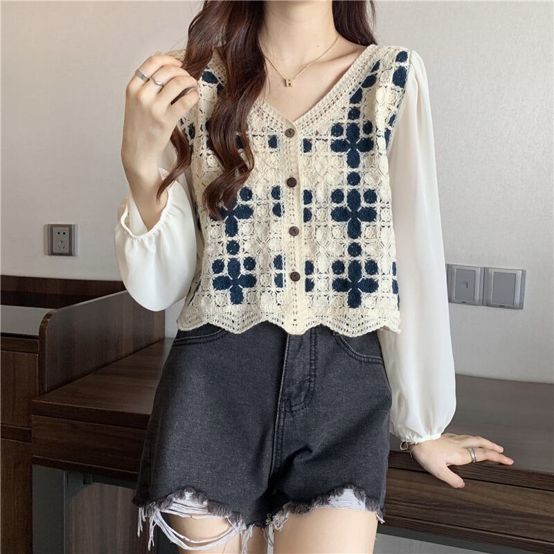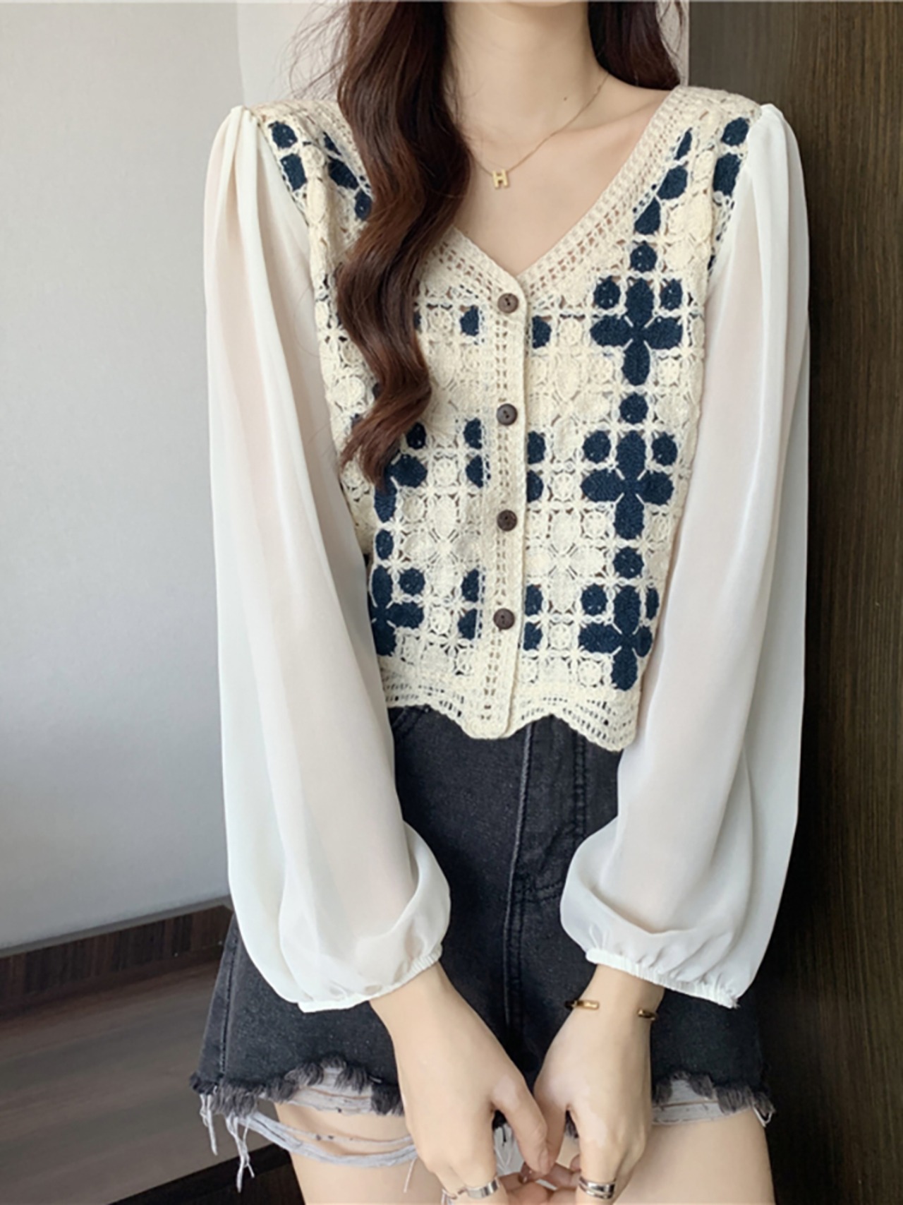 身頃はクロシェ編み、袖はシフォンと異素材MIXがおしゃれ◎
